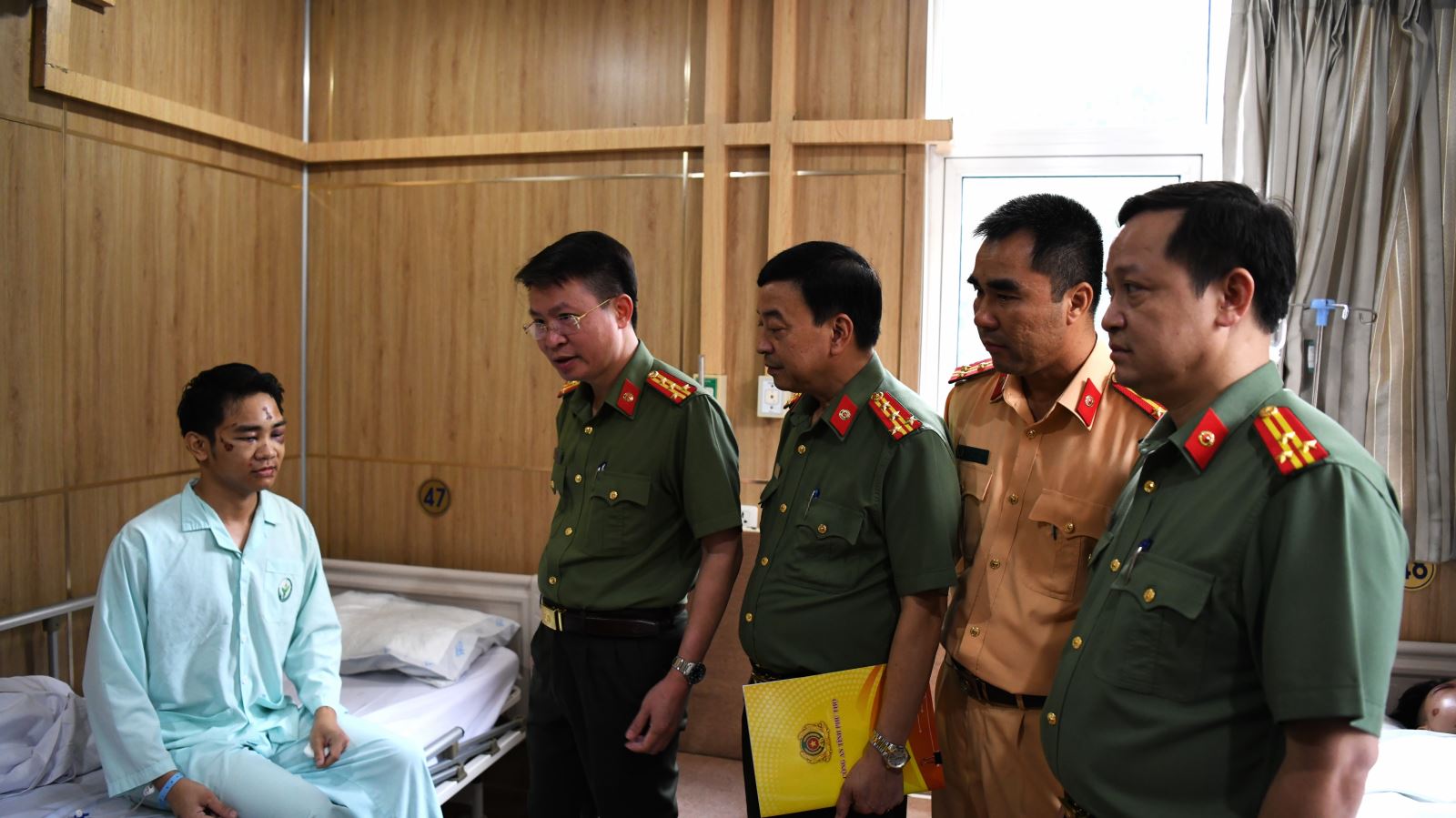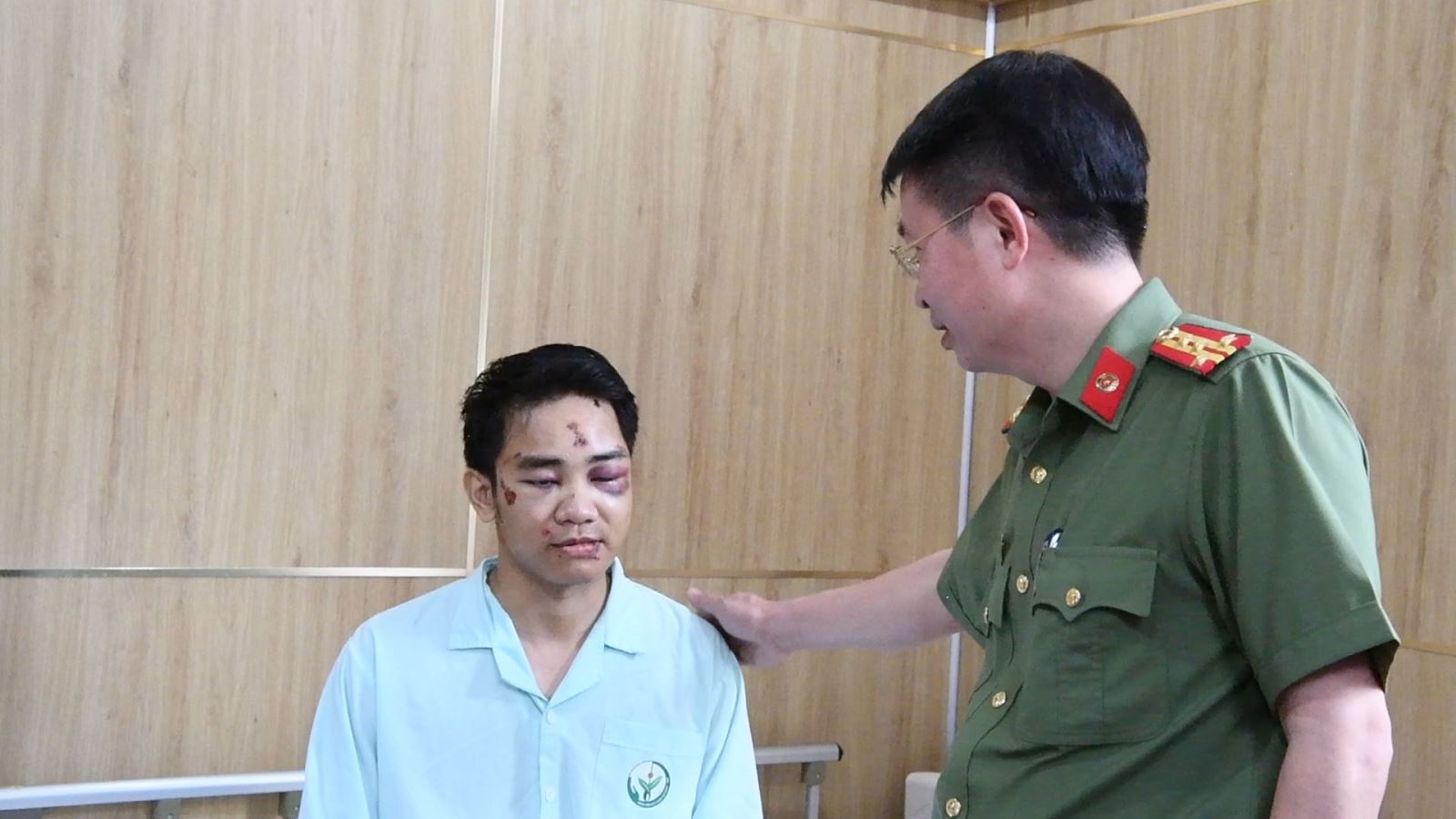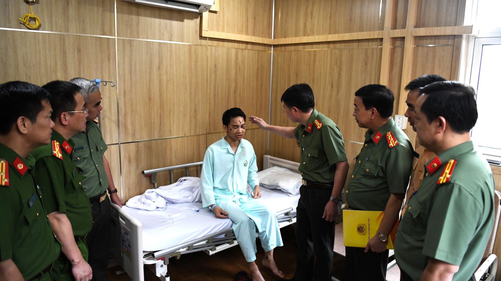 Đồng chí Giám đốc Công an tỉnh thăm hỏi động viên cán bộ bị thương trong khi làm nhiệm vụ (04/10/2023)