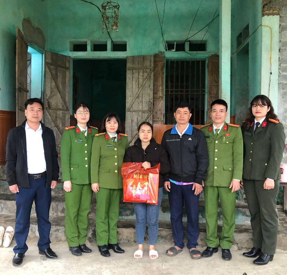 Công an xã Nật Sơn phối hợp với các tổ chức đoàn thể tổ chức thăm hỏi, tặng quà hộ gia đình có hoàn cảnh đặc biệt khó khăn trên địa bàn