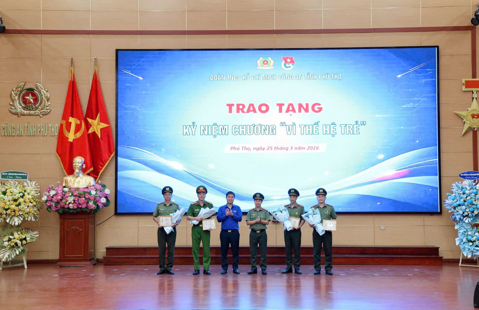 Lãnh đạo Công an tỉnh và Tỉnh đoàn Phú Thọ đã trao tặng kỷ niệm chương “Vì thế hệ trẻ” cho các cá nhân tiêu biểu