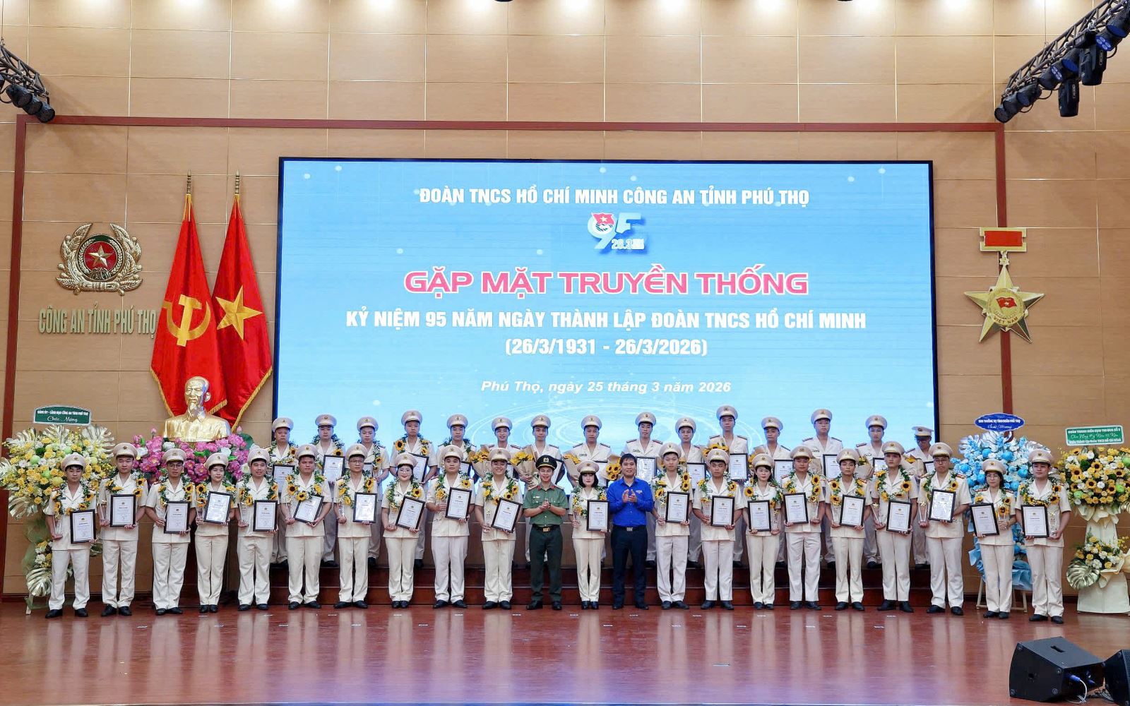 Chiều 25/3/2026, Công an tỉnh Phú Thọ tổ chức chương trình gặp mặt kỷ niệm 95 năm Ngày thành lập Đoàn TNCS Hồ Chí Minh (26/3/1931 – 26/3/2026). Dự và chỉ đạo tại buổi gặp mặt có đồng chí Thượng tá Bùi Việt Hùng, Phó Bí thư Đảng ủy, Phó Giám đốc Công an tỉnh. Dự buổi gặp mặt còn có đồng chí Trần Anh Tuấn, Phó Bí thư Tỉnh đoàn Phú Thọ; các đồng chí nguyên cán bộ Đoàn qua các thời kỳ; đại diện cấp ủy, lãnh đạo các đơn vị trực thuộc Công an tỉnh và Ban Phụ nữ Công an tỉnh.