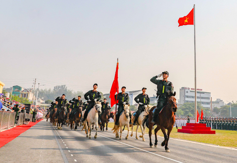 Cùng với 09 khối tham gia diễu binh, diễu hành của lực lượng CAND, Lễ kỷ niệm 70 năm Chiến thắng Điện Biên Phủ năm nay đặc biệt còn có sự tham gia của khối nữ Cảnh sát đặc nhiệm và khối CSCĐ kỵ binh. Với khối CSCĐ kỵ binh, trải qua hơn 04 năm thuần phục và huấn luyện, từ những chú ngựa hoang dã đến nay đã trở thành ngựa nghiệp vụ, có tính kỷ luật, có thể thực hiện nhuần nhuyễn động tác, kỹ năng trong công tác tấn công, trấn áp các loại tội phạm.