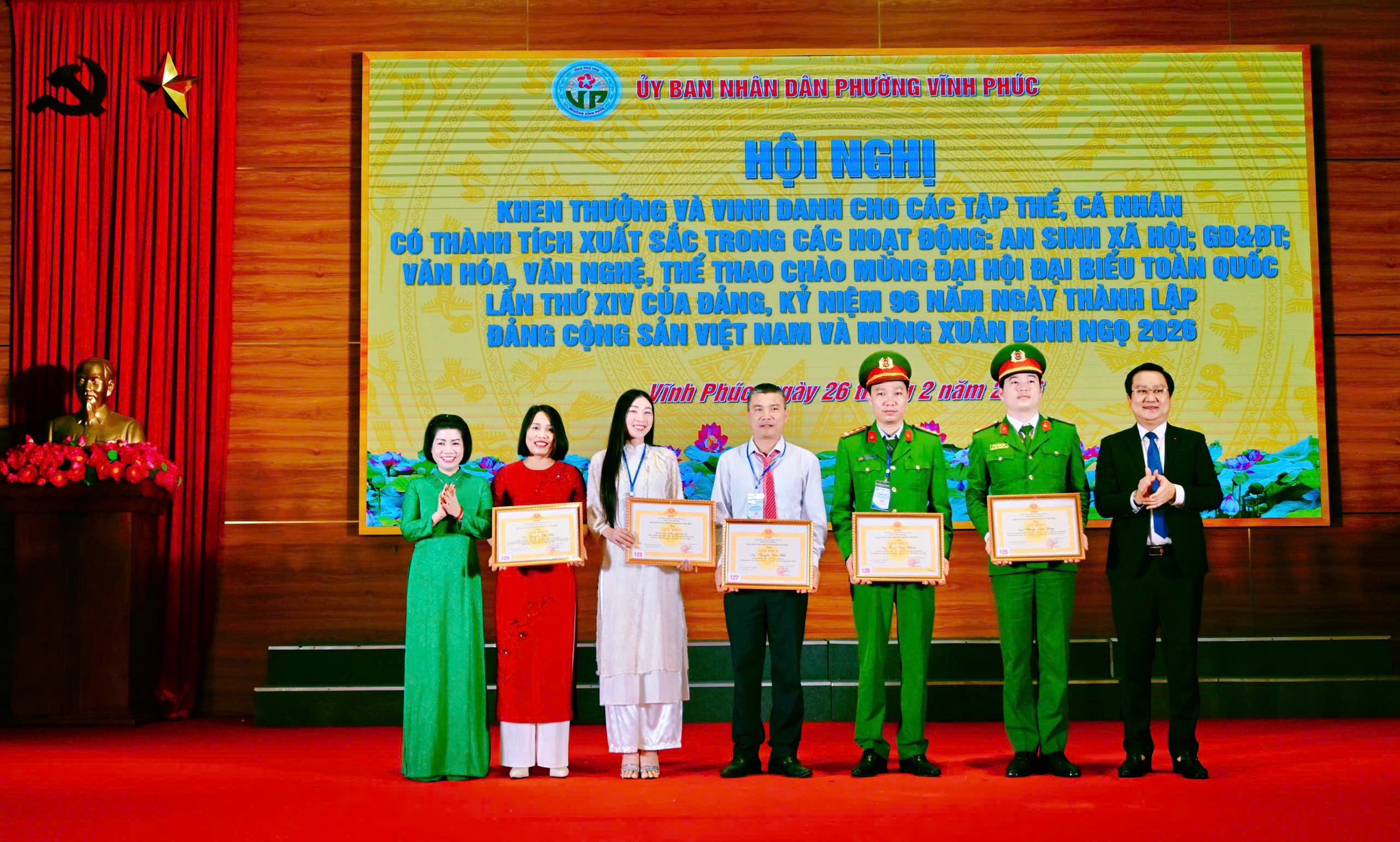 Chiều ngày 26/02/2026, tại Hội nghị khen thưởng, vinh danh các tập thể, cá nhân tiêu biểu trên địa bàn, UBND Phường Vĩnh Phúc đã ghi nhận nhiều thành tích nổi bật trên các lĩnh vực an sinh xã hội, Giáo dục - Đào tạo, văn hóa, văn nghệ, thể thao, thiết thực chào mừng Đại hội đại biểu toàn quốc lần thứ XIV của Đảng, kỷ niệm 96 năm Ngày thành lập Đảng và mừng xuân Bính Ngọ 2026.