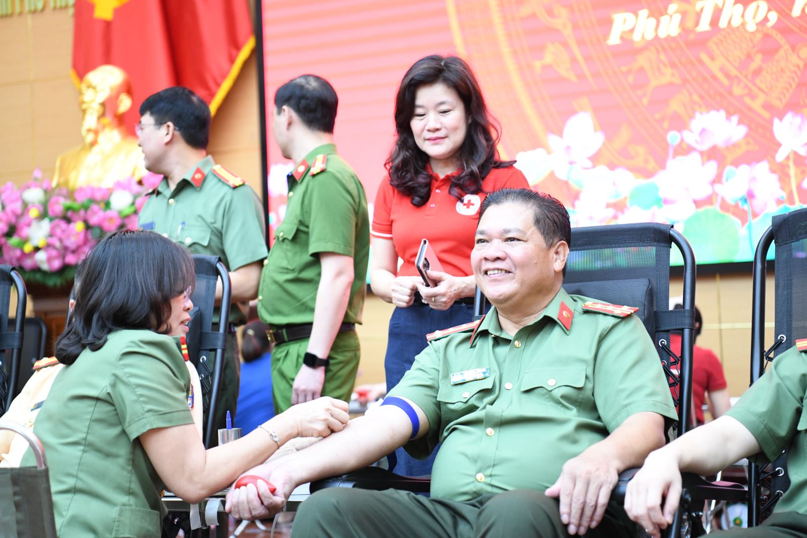 Cán bộ, chiến sĩ Công an tỉnh Phú Thọ tham gia hiến máu tình nguyện tại chương trình.