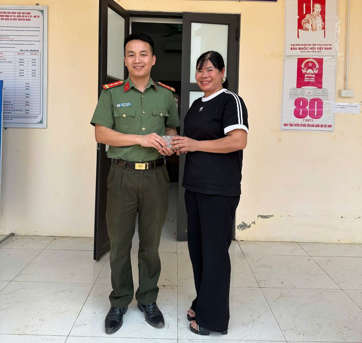 Sau khi nhặt được tài sản, anh B.T.B., trú tại xóm Đổn, xã Nhân Nghĩa đã nhanh chóng mang đến giao nộp tại Công an xã Nhân Nghĩa để hỗ trợ tìm người đánh mất. Ngay sau khi tiếp nhận, Công an xã Nhân Nghĩa đã tiến hành xác minh, phối hợp với Công an xã Thiệu Tiến, tỉnh Thanh Hóa liên hệ với chị L.T.L.Q. đến nhận lại tài sản.
