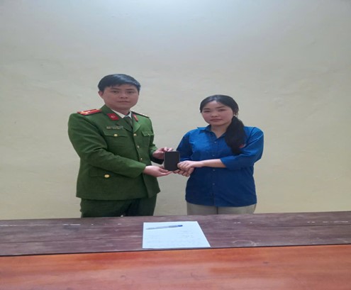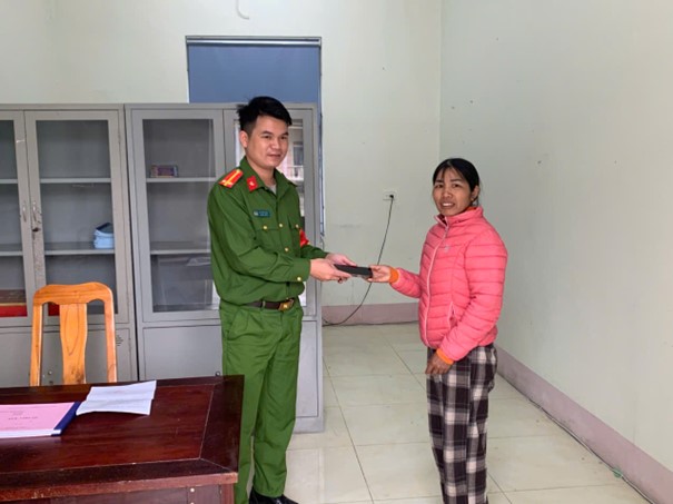 Công an xã trao trả lại chiếc điện thoại cho chị Trần Thị Hà