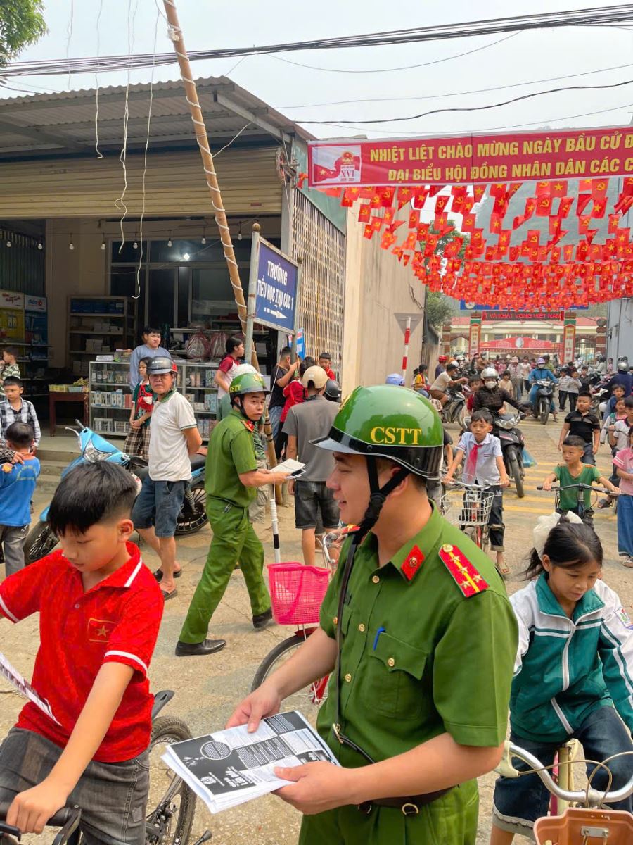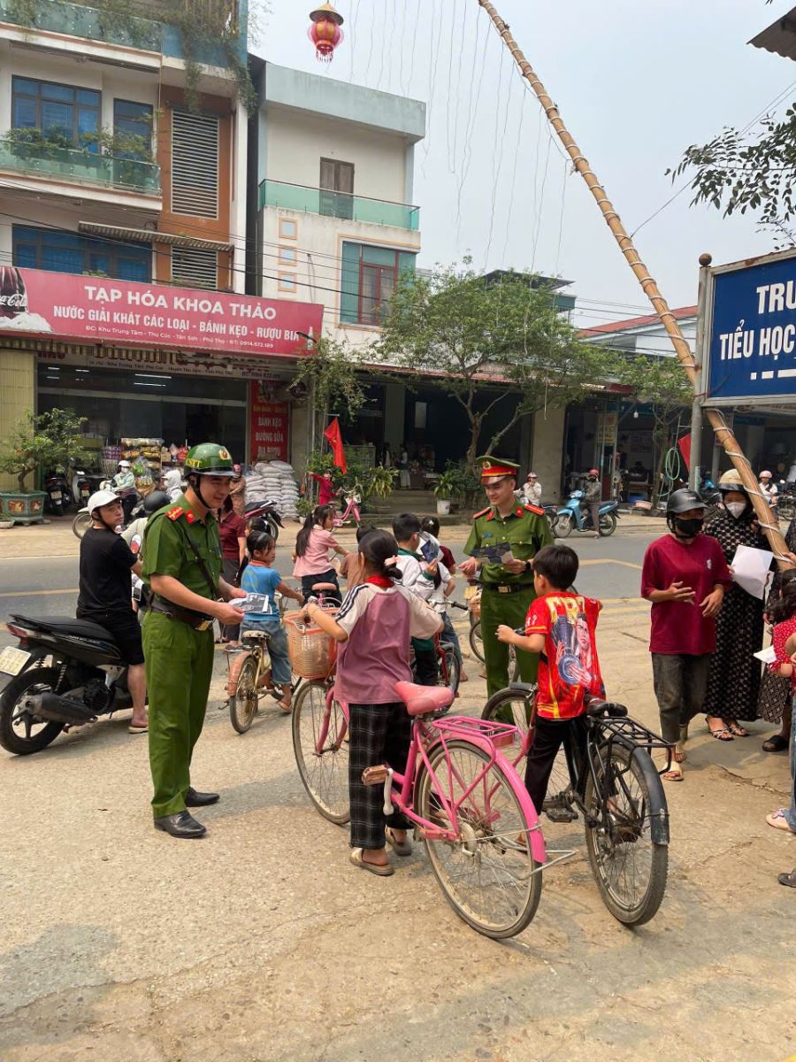 Song song với công tác điều tiết giao thông, Công an xã Thu Cúc lồng ghép tuyên truyền, hướng dẫn kỹ năng tham gia giao thông an toàn cho học sinh. Nội dung tập trung vào việc chấp hành quy định khi đi bộ, đi xe đạp, xe máy điện; nhận diện các tình huống nguy hiểm và cách xử lý phù hợp. Đối với phụ huynh, lực lượng chức năng trực tiếp nhắc nhở việc đội mũ bảo hiểm cho con em, không giao phương tiện cho người chưa đủ điều kiện điều khiển.