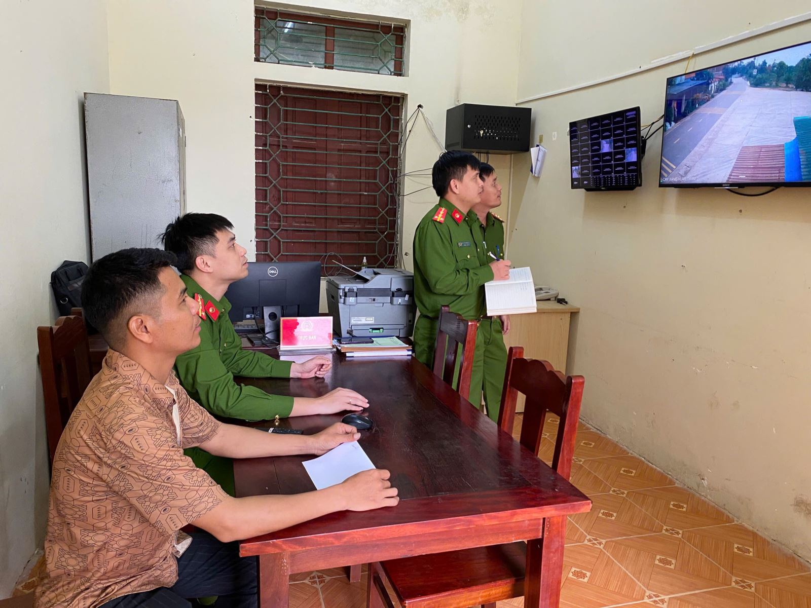 Công an xã Đồng Lương khai thác dữ liệu camera phục vụ công tác