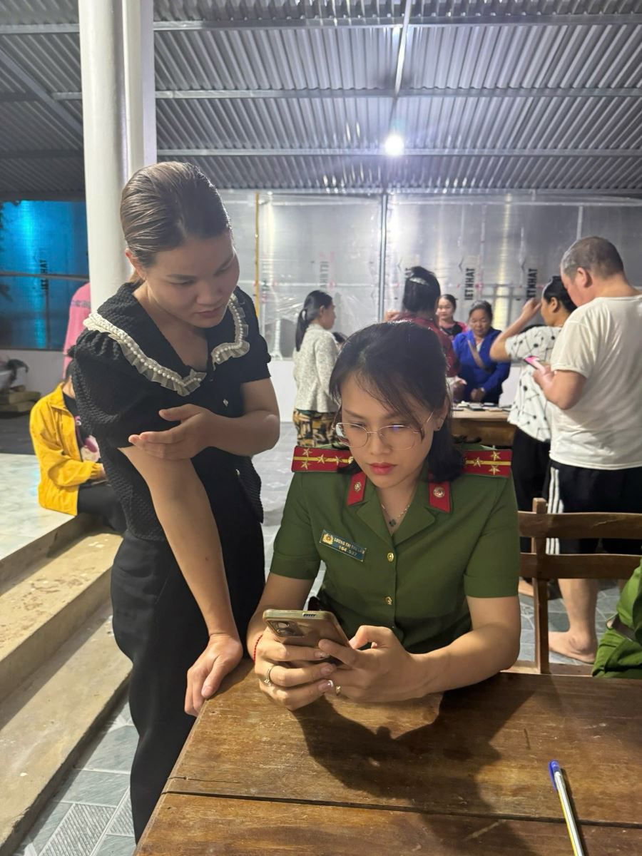 Công an xã Cao Sơn hỗ trợ công dân tích hợp tài khoản An sinh xã hội trên ứng dụng VNeID