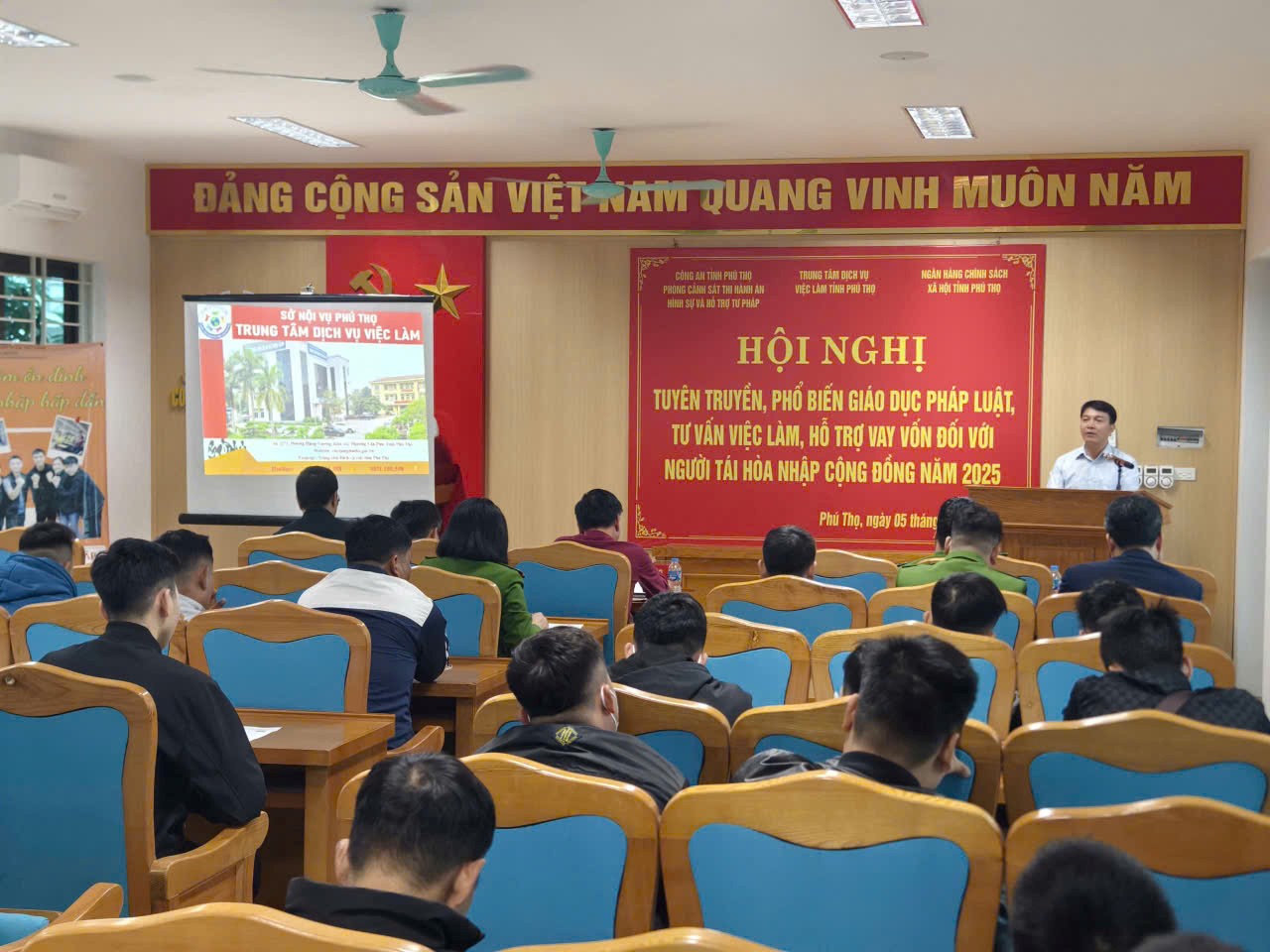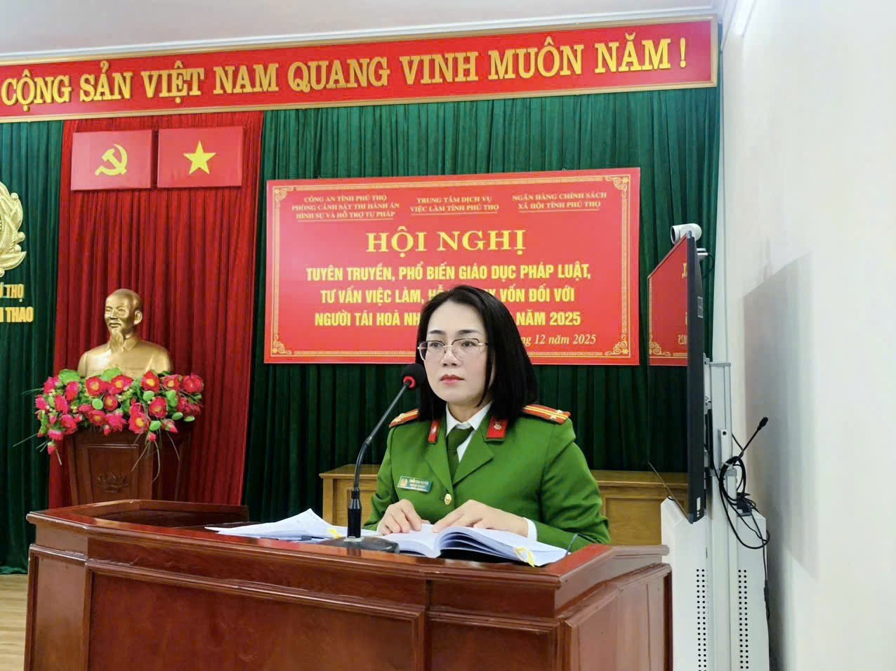 Thực hiện chủ trương, chính sách hình sự nhân văn của Đảng và Nhà nước, trong tháng 12/2025, Phòng Cảnh sát Thi hành án hình sự và Hỗ trợ tư pháp Công an tỉnh Phú Thọ đã phối hợp với Trung tâm Dịch vụ việc làm tỉnh và Ngân hàng Chính sách xã hội tỉnh tổ chức 04 Hội nghị “Tuyên truyền, phổ biến giáo dục pháp luật, tư vấn việc làm, hỗ trợ vay vốn” đối với người tái hòa nhập cộng đồng tại địa bàn các xã Thanh Thủy, Tam Nông, Lâm Thao và Bản Nguyên.