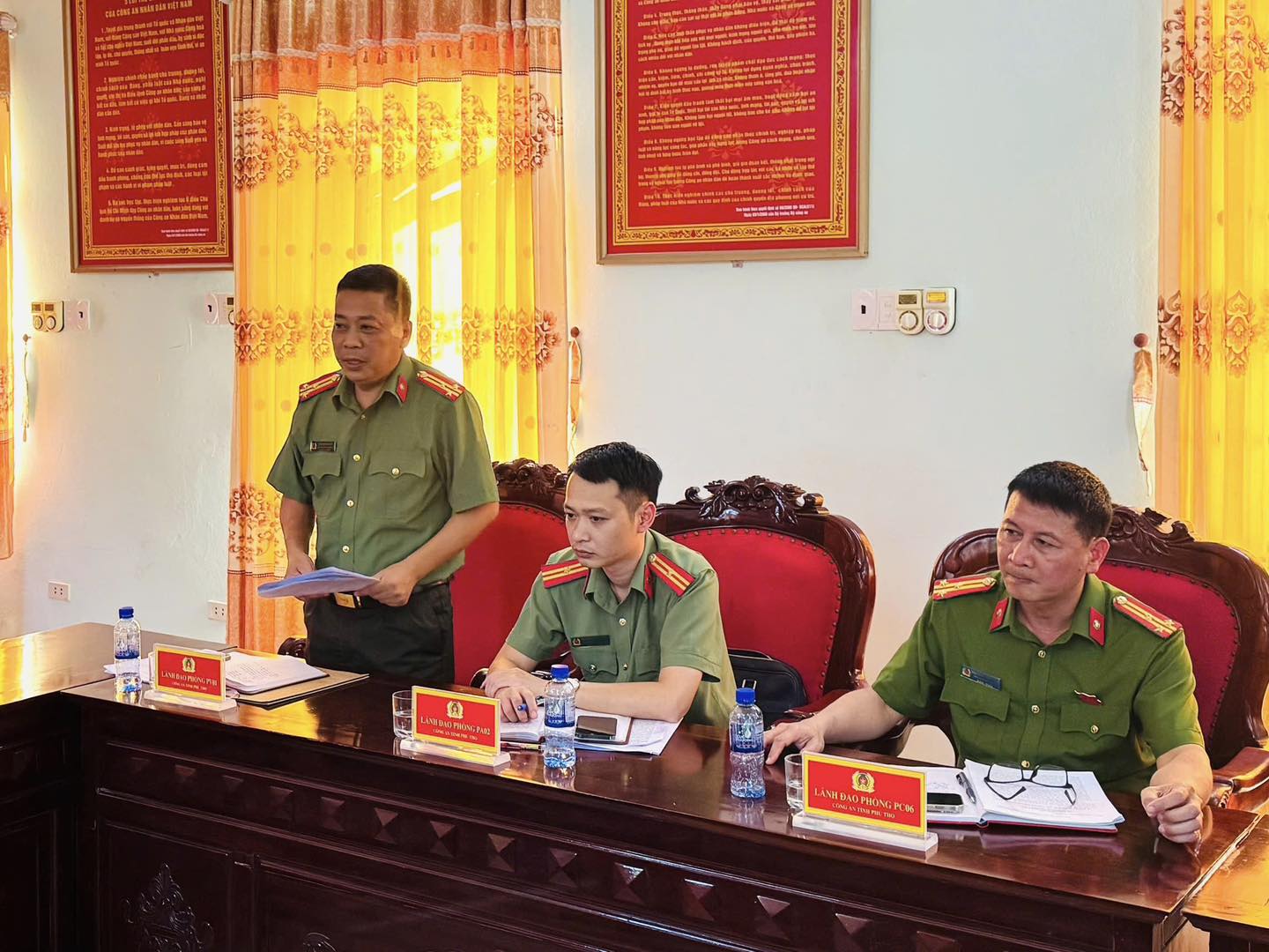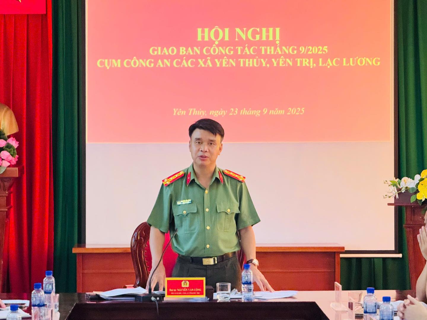 Chiều 23/9, tại trụ sở Công an xã Yên Thủy, Công an tỉnh Phú Thọ tổ chức Hội nghị giao ban công tác tháng 9/2025 cụm Công an các xã Yên Thủy, Yên Trị, Lạc Lương. Đại tá Nguyễn Văn Công, Phó Giám đốc Công an tỉnh chủ trì Hội nghị. Tham dự còn có đại diện lãnh đạo các phòng nghiệp vụ Công an tỉnh và chỉ huy Công an 3 xã trong cụm.