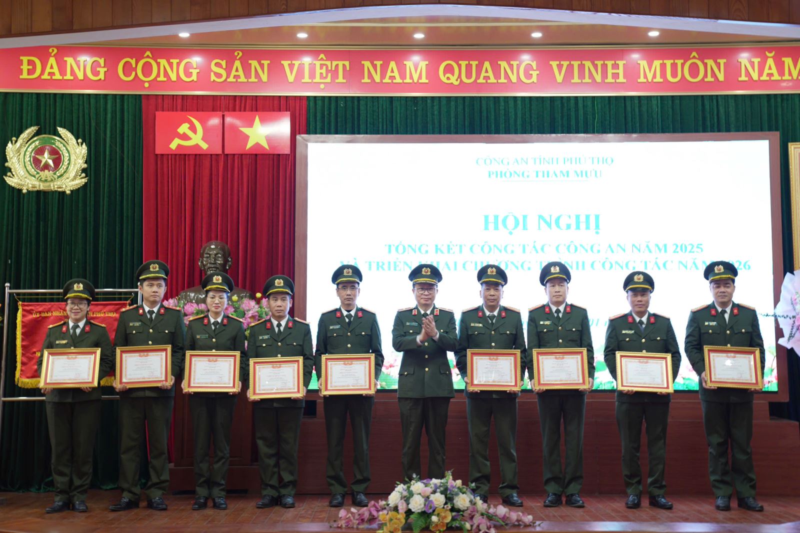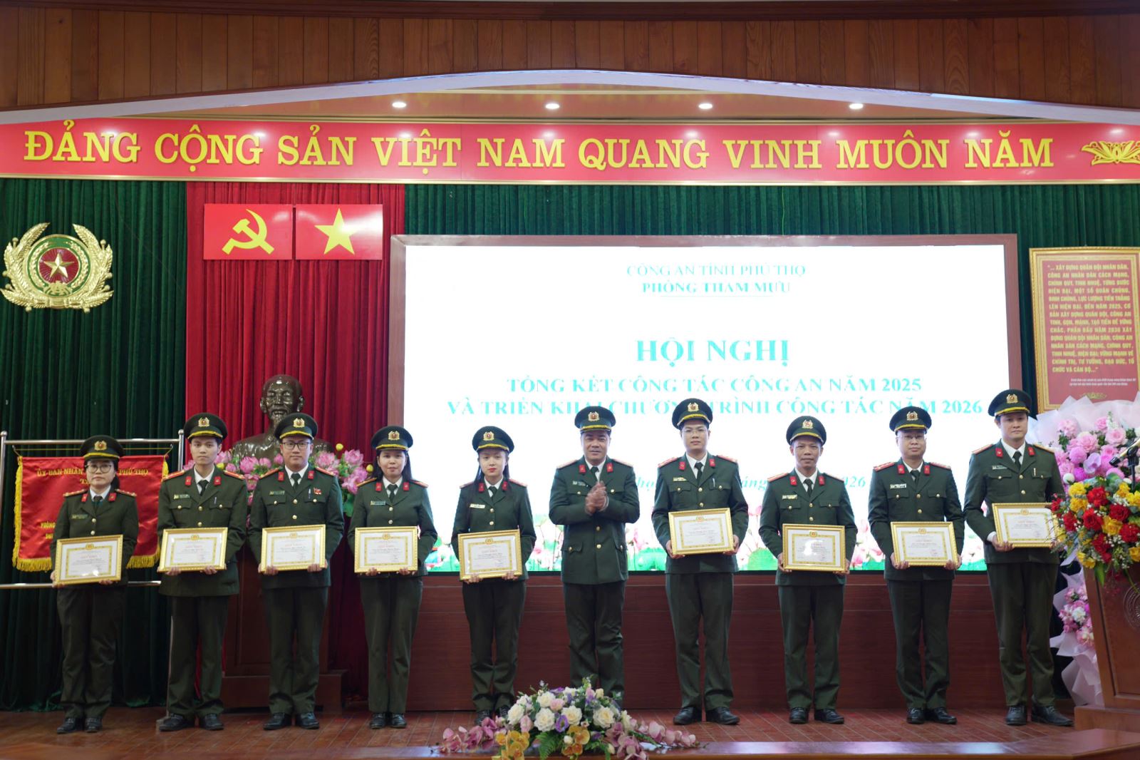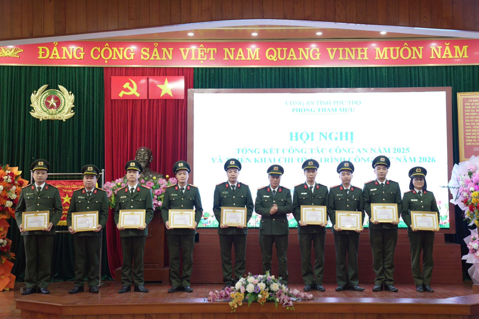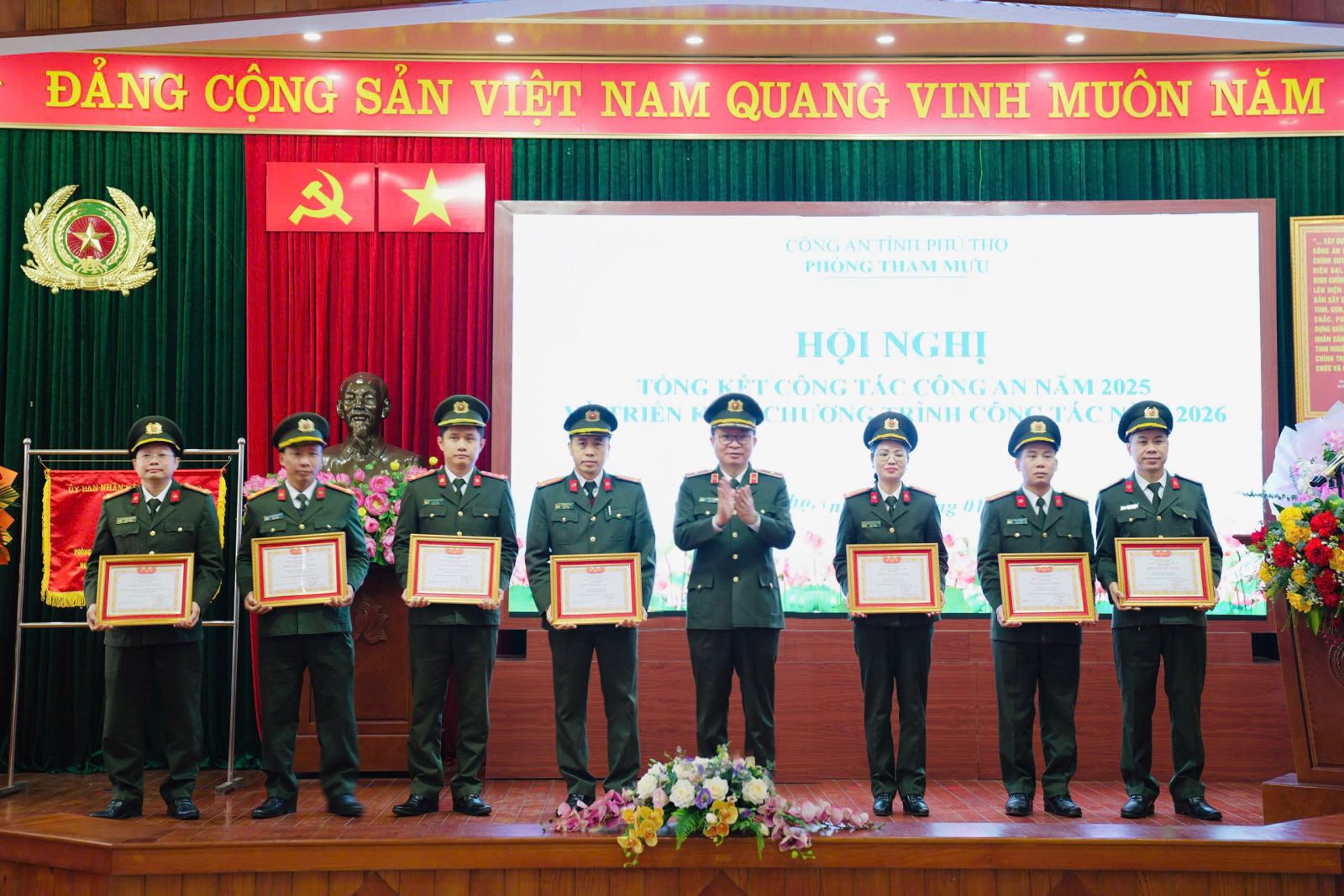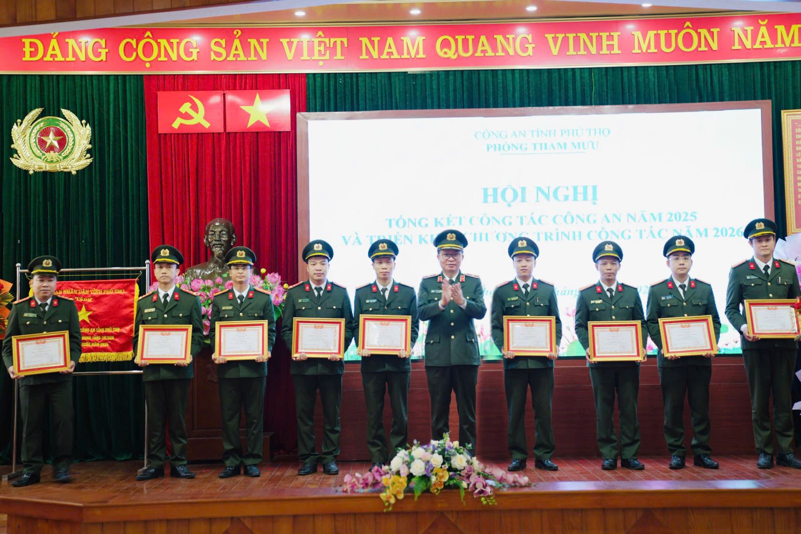 Với những thành tích đạt được, năm 2025, Phòng Tham mưu vinh dự được đón nhận Cờ thi đua xuất sắc của Ủy ban nhân dân tỉnh Phú Thọ trong phong trào thi đua “Vì an ninh Tổ quốc”; có 12 lượt tập thể và 75 lượt cá nhân được các cấp tặng bằng khen, giấy khen.
