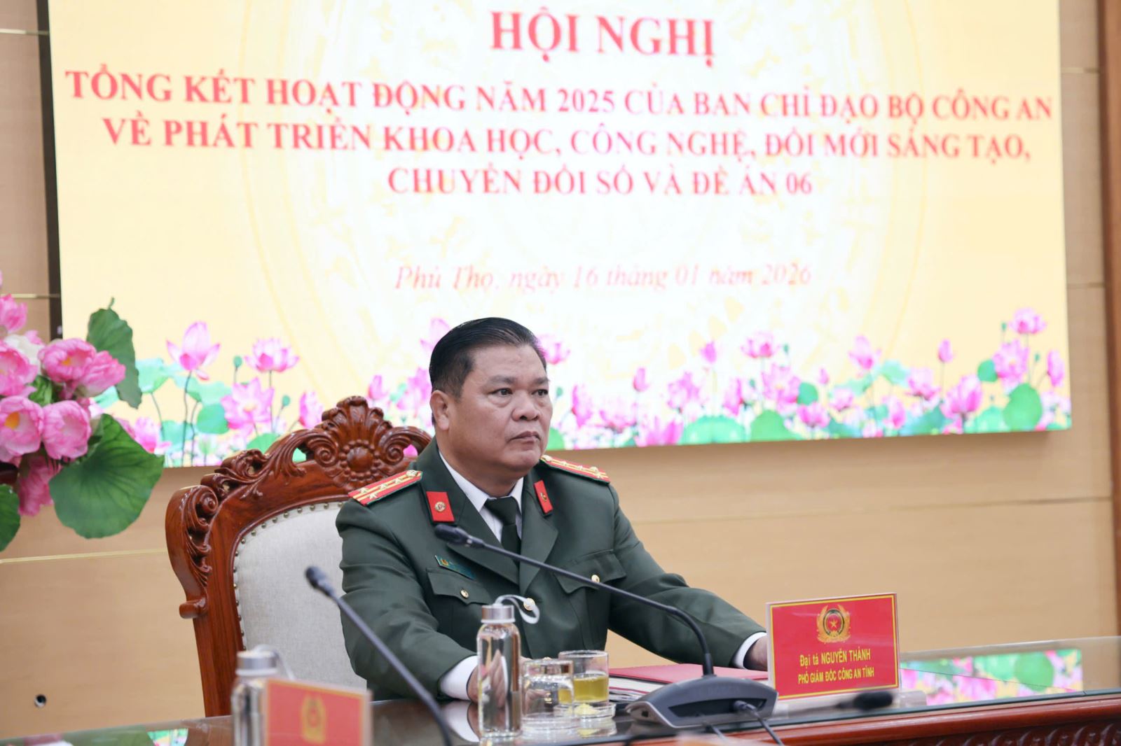 Đồng chí Đại tá Nguyễn Thành, Phó Giám đốc chủ trì tại điểm cầu Công an tỉnh Phú Thọ. Cùng dự có đại diện lãnh đạo các đơn vị thuộc Công an tỉnh Phú Thọ.