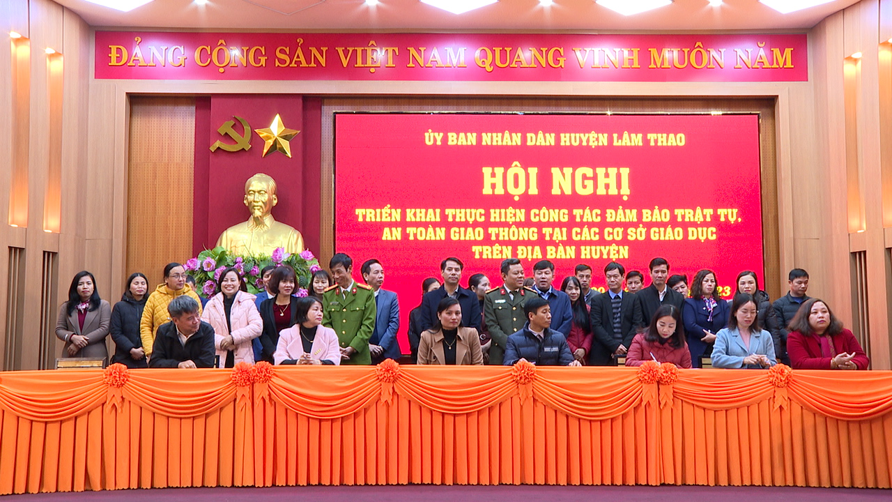 Hội nghị đã tổ chức ký cam kết chấp hành quy định về bảo đảm TTATGT cho các cơ sở giáo dục trên địa bàn huyện./.