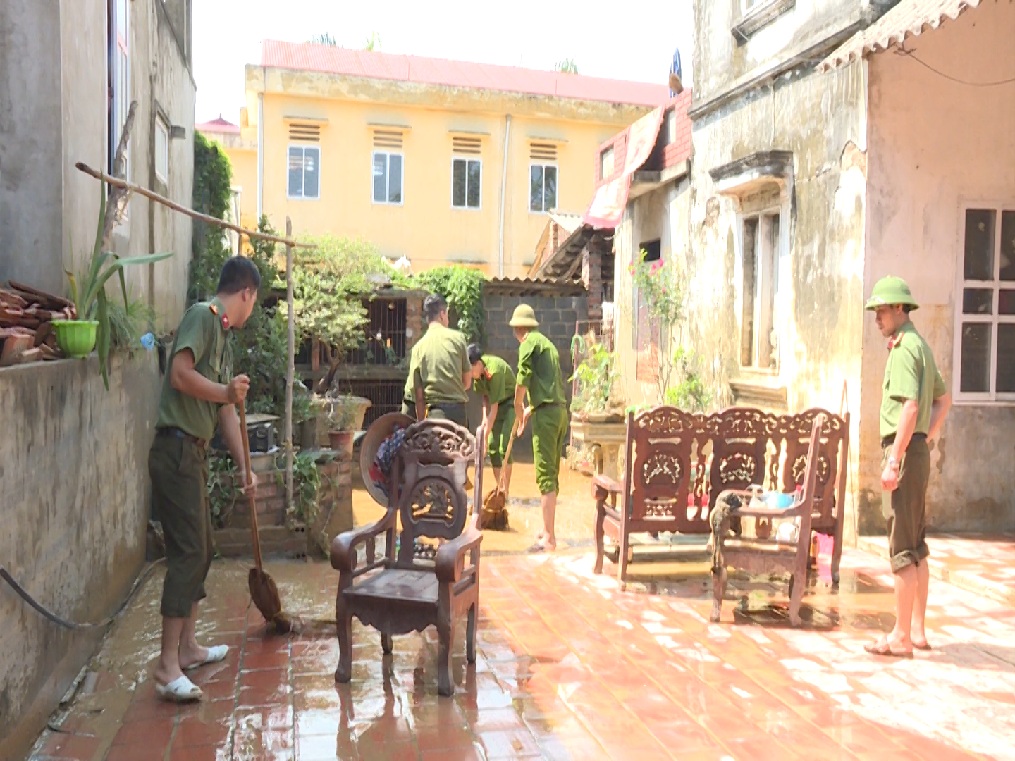 vệ sinh nhà cửa sau đợt mưa lũ, sớm đi vào ổn định cuộc sống.