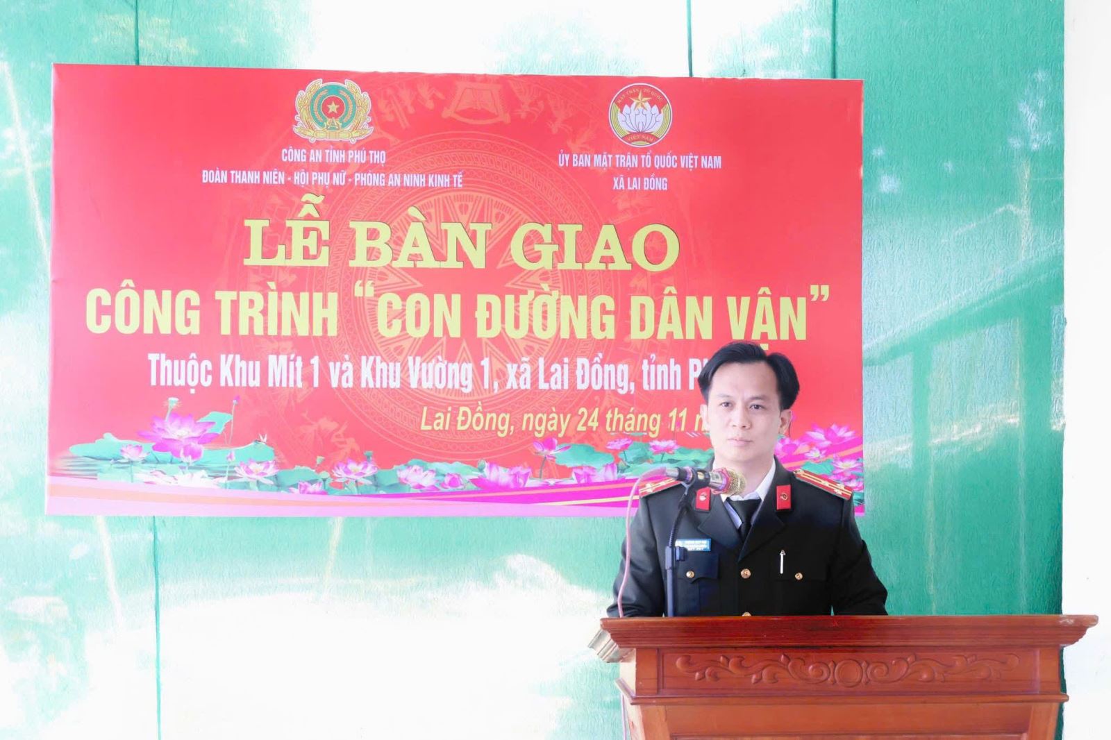 Công trình hoàn thành là minh chứng sinh động cho tinh thần đoàn kết, trách nhiệm và tình cảm của cán bộ, chiến sĩ Công an tỉnh Phú Thọ đối với nhân dân trên địa bàn. Tham dự buổi lễ có đại diện các đơn vị nghiệp vụ Công an tỉnh, Công an xã Lai Đồng cùng lãnh đạo cấp ủy, chính quyền và MTTQ Việt Nam xã.