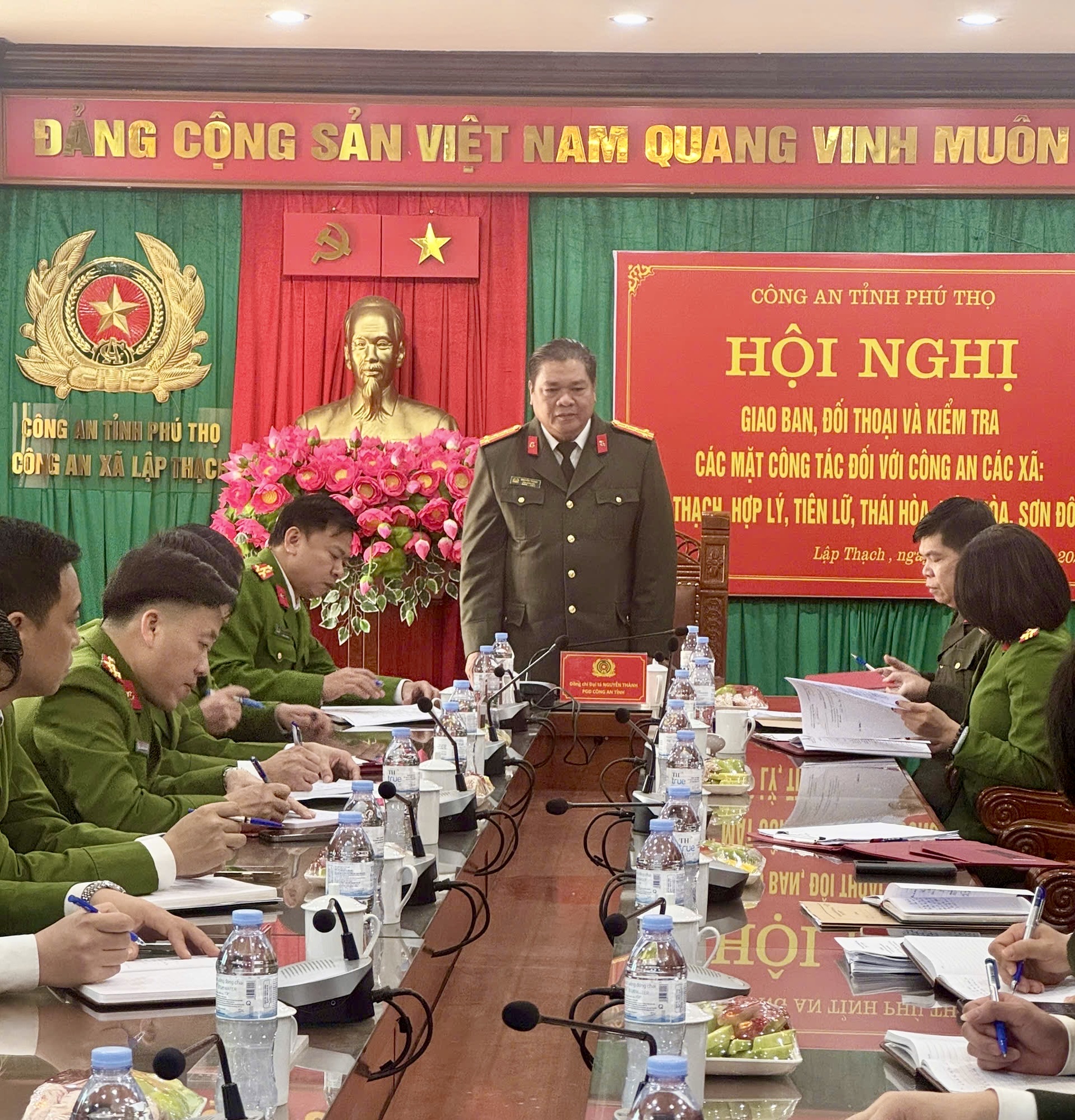 Chiều ngày 05/3/2026, Đoàn kiểm tra của Công an tỉnh Phú Thọ do đồng chí Đại tá Nguyễn Thành, Phó Giám đốc Công an tỉnh làm Trưởng đoàn đã tiến hành kiểm tra toàn diện các mặt công tác tại Công an xã Lập Thạch, tỉnh Phú Thọ. Tham gia đoàn kiểm tra có đại diện lãnh đạo, chỉ huy và chuyên viên các Phòng PV01, PC01, PC02, PC04, PC06. Buổi kiểm tra nhằm đánh giá kết quả triển khai nhiệm vụ tại cơ sở, đồng thời kịp thời phát hiện, chấn chỉnh những tồn tại, hạn chế trong quá trình công tác.