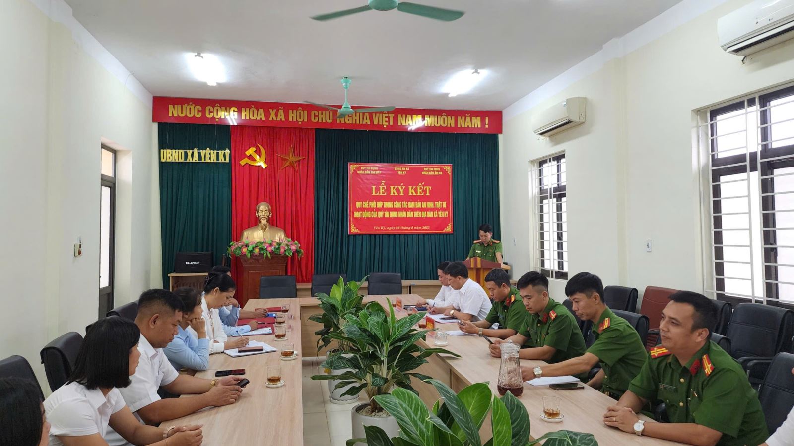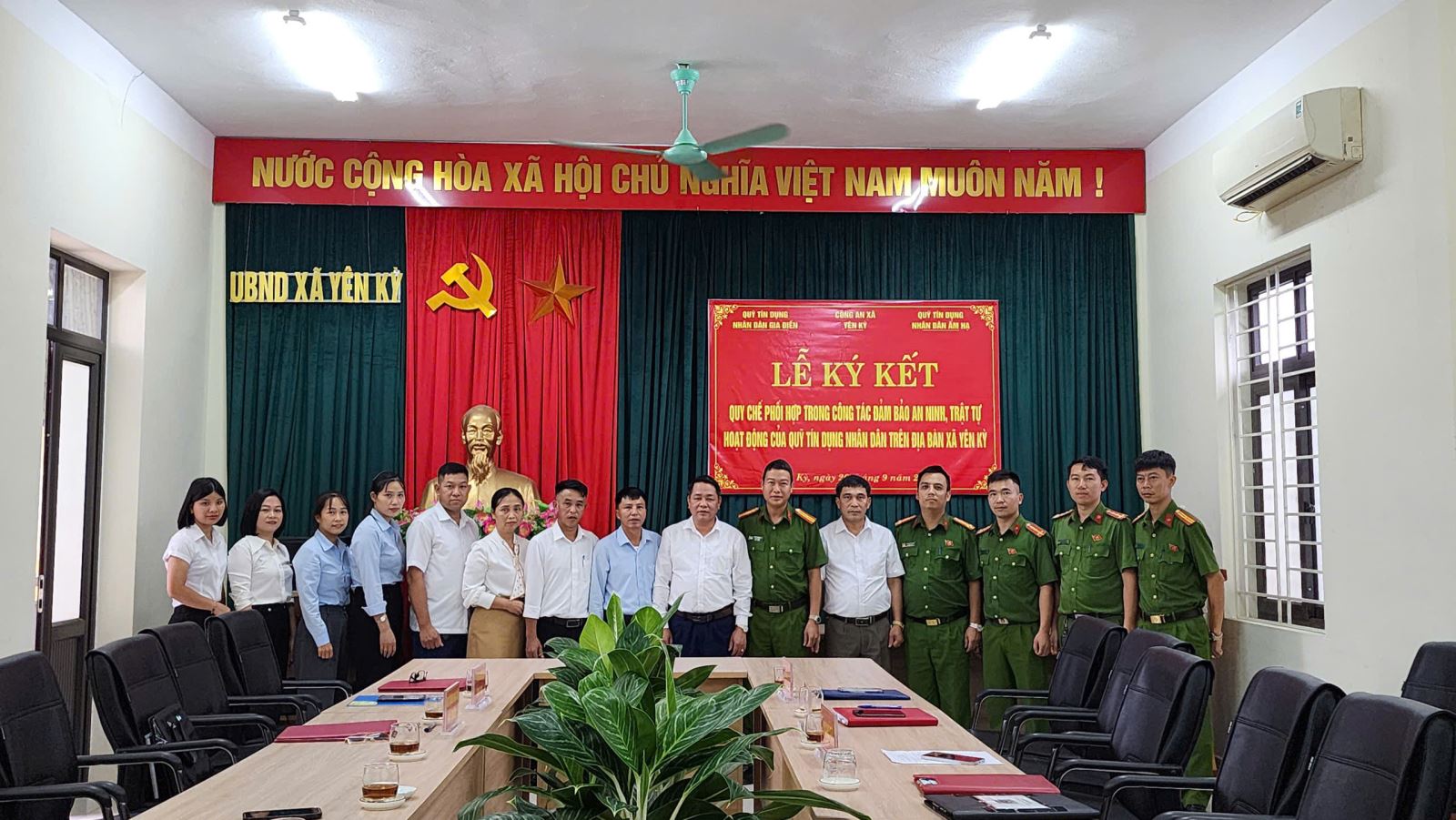 Vừa qua, tại Hội trường UBND xã Yên Kỳ, Công an xã Yên Kỳ và Quỹ tín dụng nhân dân Gia Điền, Quỹ tín dụng Nhân dân Ấm Hạ ký kết Quy chế phối hợp trong công tác đảm bảo an ninh, trật tự hoạt động của Quỹ tín dụng trên địa bàn xã Yên Kỳ.