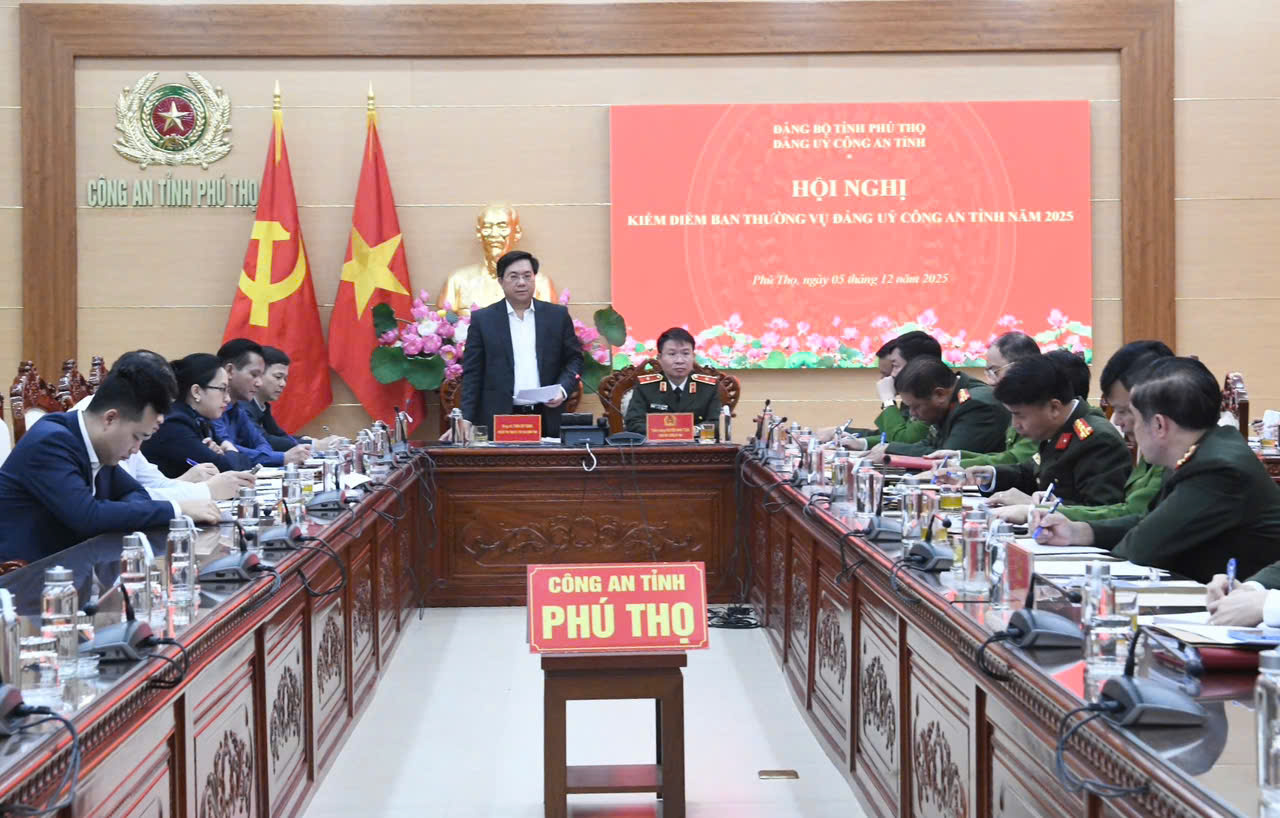 Sáng ngày 05/12/2025, Đảng ủy Công an tỉnh Phú Thọ tổ chức Hội nghị kiểm điểm tập thể, cá nhân Ban Thường vụ Đảng ủy năm 2025. Tới dự và chỉ đạo có đồng chí Trần Duy Đông - Phó Bí thư Tỉnh ủy, Chủ tịch UBND tỉnh; đại diện lãnh đạo Ban Nội chính Tỉnh ủy, Văn Phòng Tỉnh ủy, Ủy ban kiểm tra Tỉnh ủy, Ban Tổ chức Tỉnh ủy, Văn phòng UBND tỉnh.