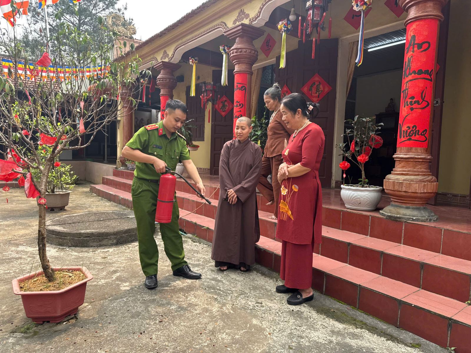Trong quá trình kiểm tra, lực lượng Công an đã kết hợp tuyên truyền, hướng dẫn người quản lý cơ sở và người dân thực hiện đúng quy định về phòng cháy, chữa cháy; nhắc nhở nâng cao ý thức trong việc sử dụng điện, sử dụng lửa tại khu vực thờ tự, hạn chế nguy cơ phát sinh cháy, nổ.