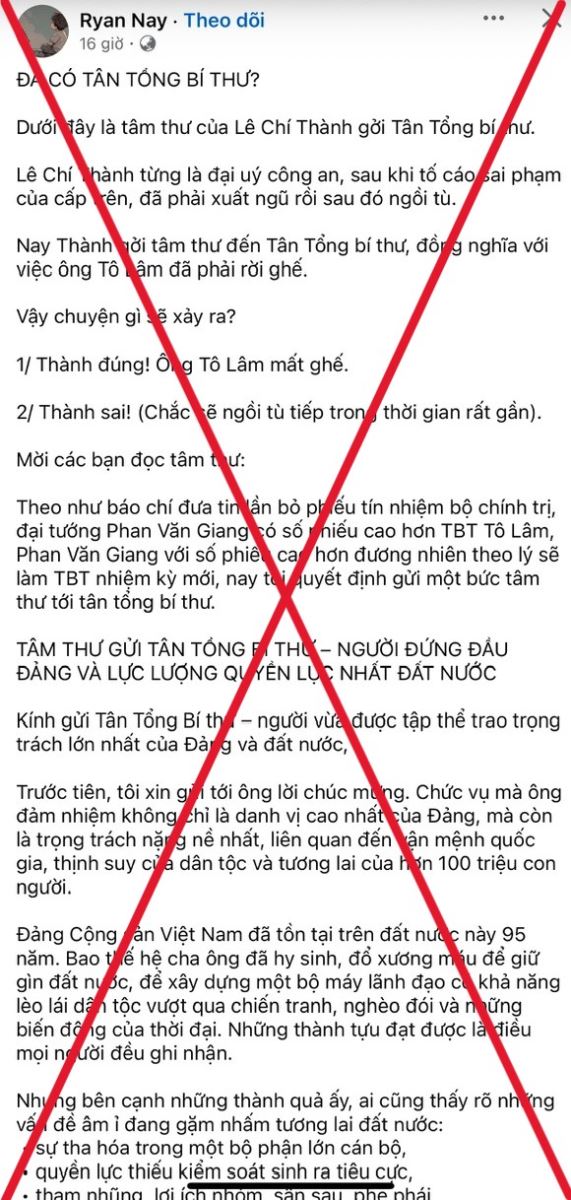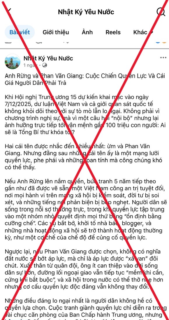 Đáng chú ý, một số đối tượng còn sử dụng thủ đoạn bôi nhọ cá nhân lãnh đạo, thông qua việc cắt ghép hình ảnh, bóp méo phát ngôn, bịa đặt thông tin, suy diễn động cơ công tác của các đồng chí lãnh đạo Đảng, Nhà nước, lực lượng vũ trang. Cần khẳng định rõ: đây là những thông tin không chính thống, không có căn cứ, được tạo dựng có chủ ý nhằm hạ thấp uy tín lãnh đạo, kích động tâm lý so sánh, đối lập, chia rẽ nội bộ.