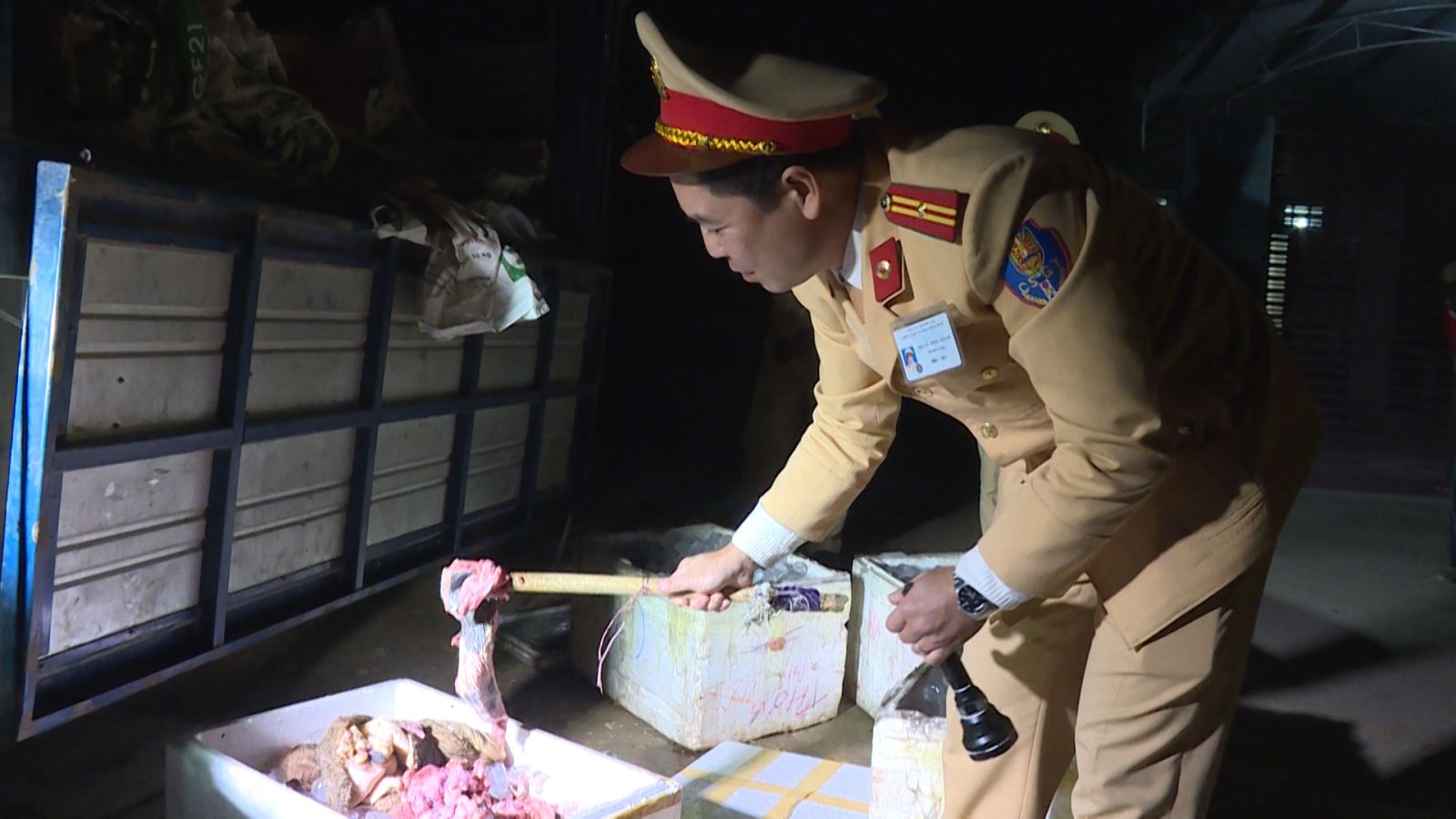 Lực lượng CSGT phát hiện, xử lý hành vi vận chuyển thực phẩm bẩn trong đợt cao điểm.