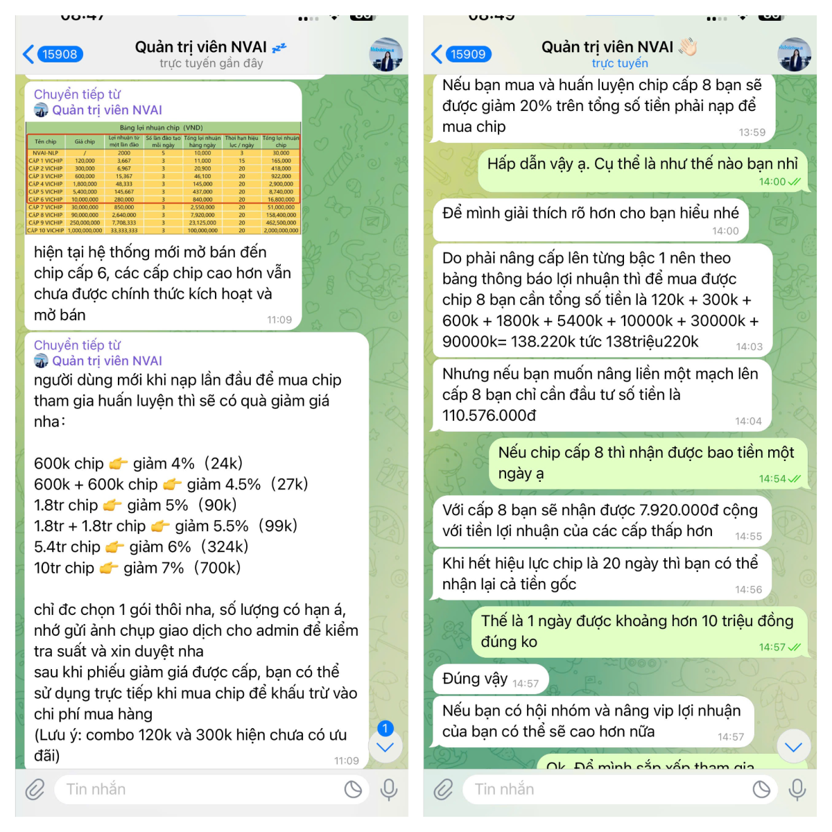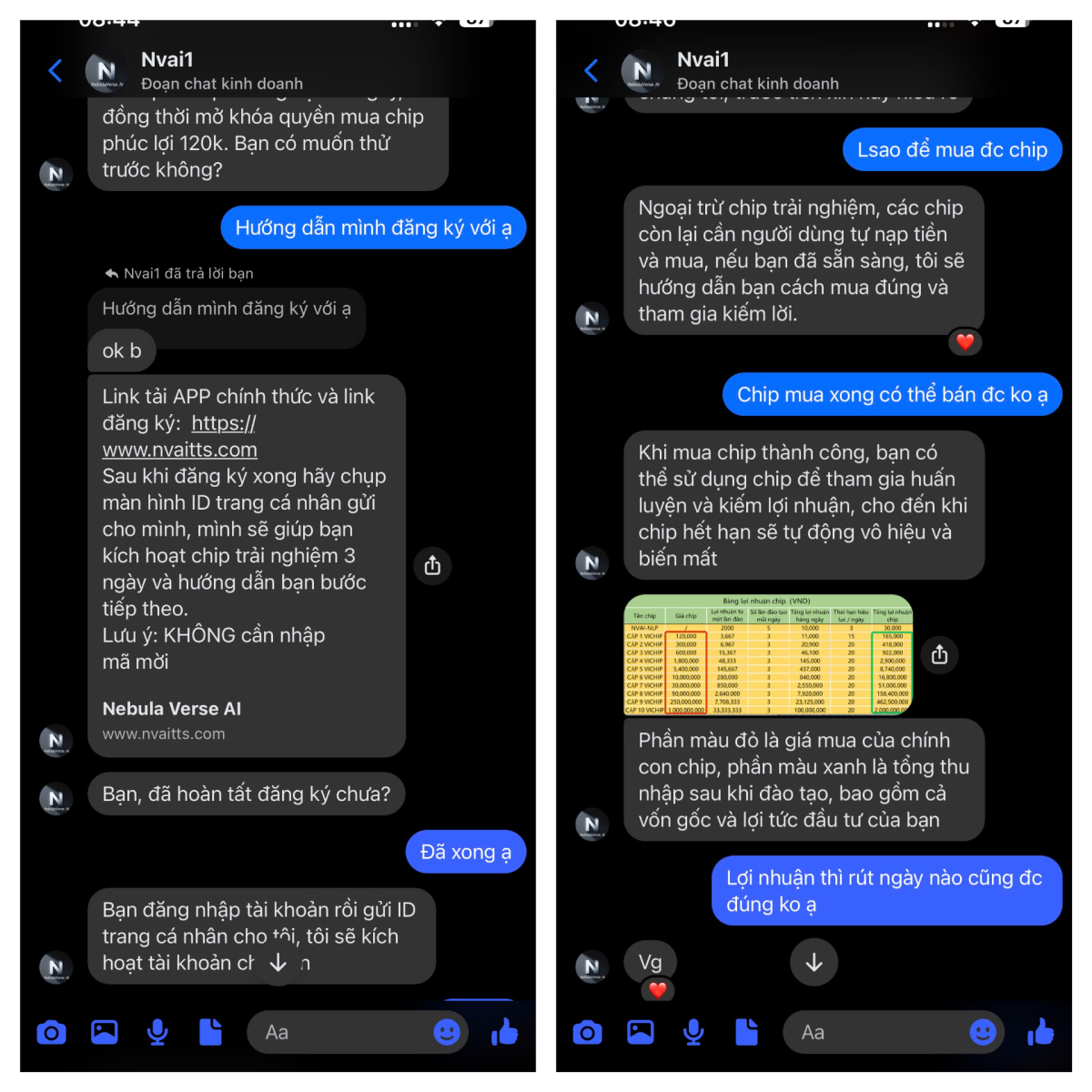Tại cơ quan Công an, anh Khánh cho biết trong quá trình sử dụng mạng xã hội Facebook, anh nhìn thấy quảng cáo về trang web có địa chỉ “https://www.nvaitts.com” với lời mời chào đầu tư lợi nhuận cao, thao tác đơn giản. Sau khi đăng ký tài khoản và nạp thử 300.000 đồng, anh nhận thấy hệ thống báo có lãi đều đặn. Tiếp đó, một người tự xưng là quản trị viên trang web liên hệ, thuyết phục anh đầu tư hơn 100 triệu đồng để “tăng lợi nhuận”. Tin tưởng vào “lợi nhuận ảo”, anh Khánh đã có ý định vay tiền người thân, hàng xóm để chuyển vào tài khoản trên.