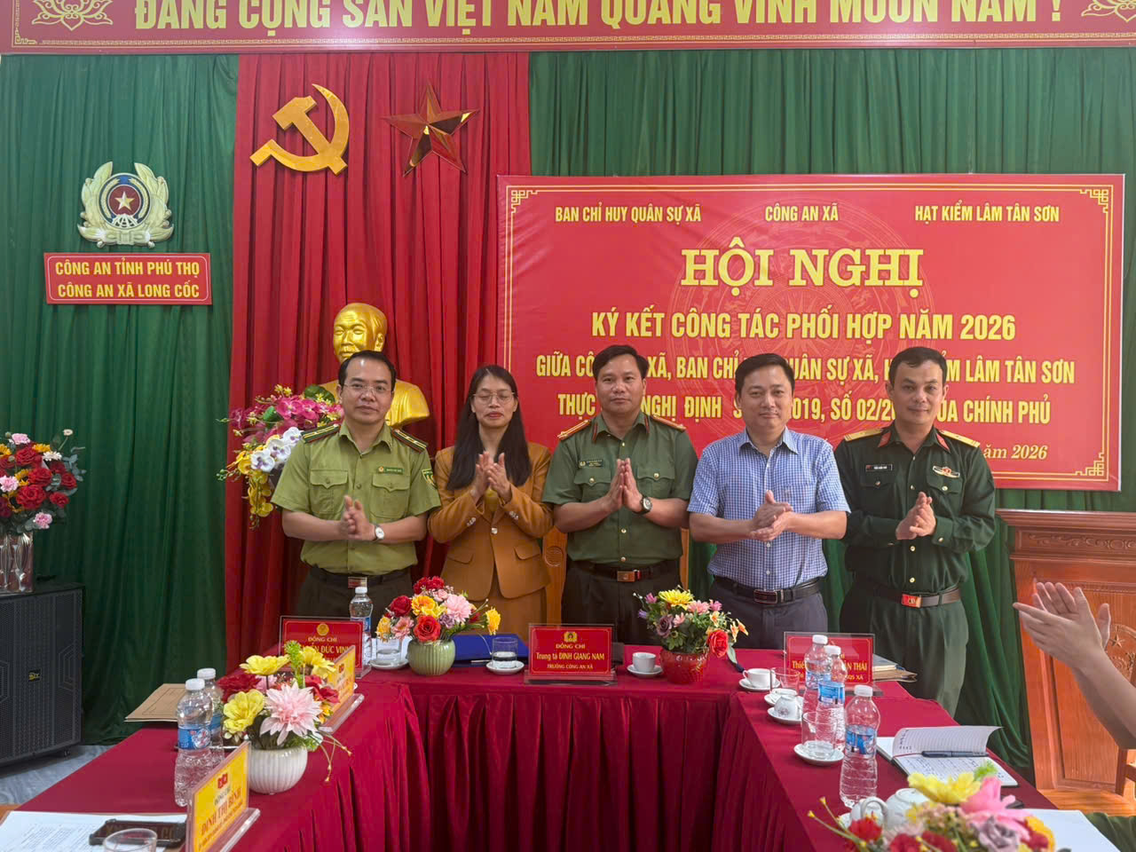 Chiều ngày 02/4/2026, Công an xã Long Cốc phối hợp Ban Chỉ huy Quân sự xã và Hạt Kiểm lâm Tân Sơn tổ chức Hội nghị ký kết Quy chế phối hợp hoạt động trong thực hiện các quy định của Chính phủ về phối hợp giữa các lực lượng trong công tác bảo đảm an ninh chính trị, trật tự an toàn xã hội và quản lý, bảo vệ rừng.