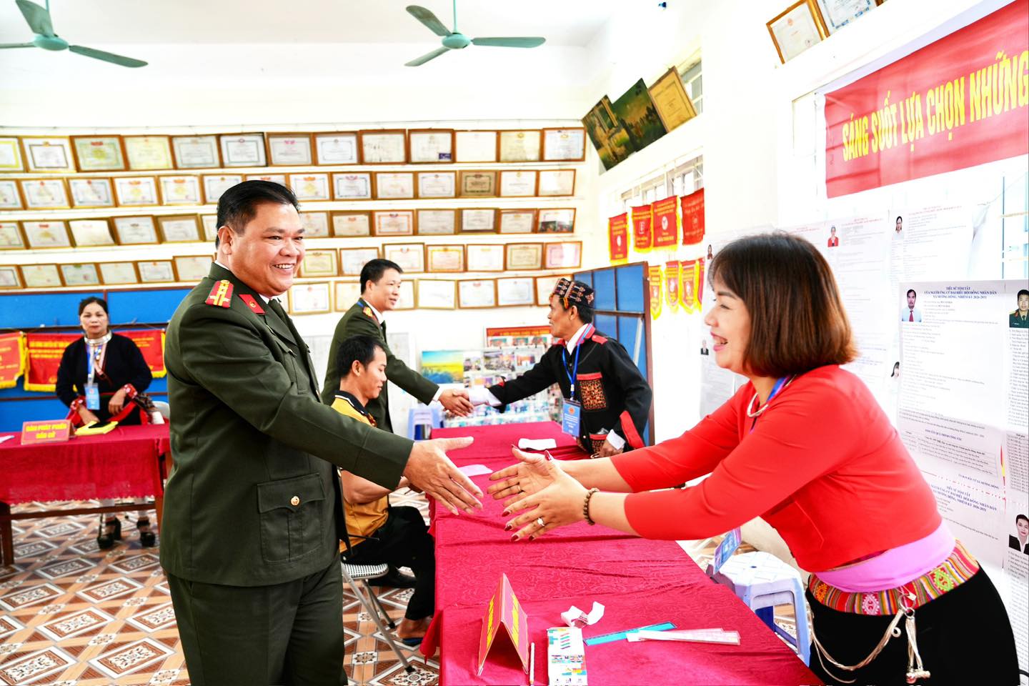 Trưa 15/3/2026, sau khi tham gia bỏ phiếu bầu cử đại biểu Quốc hội khóa XVI và đại biểu Hội đồng nhân dân các cấp nhiệm kỳ 2026 - 2031 tại khu vực bỏ phiếu số 6, phường Hòa Bình, đồng chí Đại tá Nguyễn Thành, Phó Giám đốc Công an tỉnh Phú Thọ đã đến kiểm tra công tác tổ chức bầu cử và bảo đảm an ninh, trật tự tại khu vực bỏ phiếu Tổ bầu cử số 2, thuộc đơn vị bầu cử số 1, xóm Hạ Sơn, xã Mường Động, tỉnh Phú Thọ.