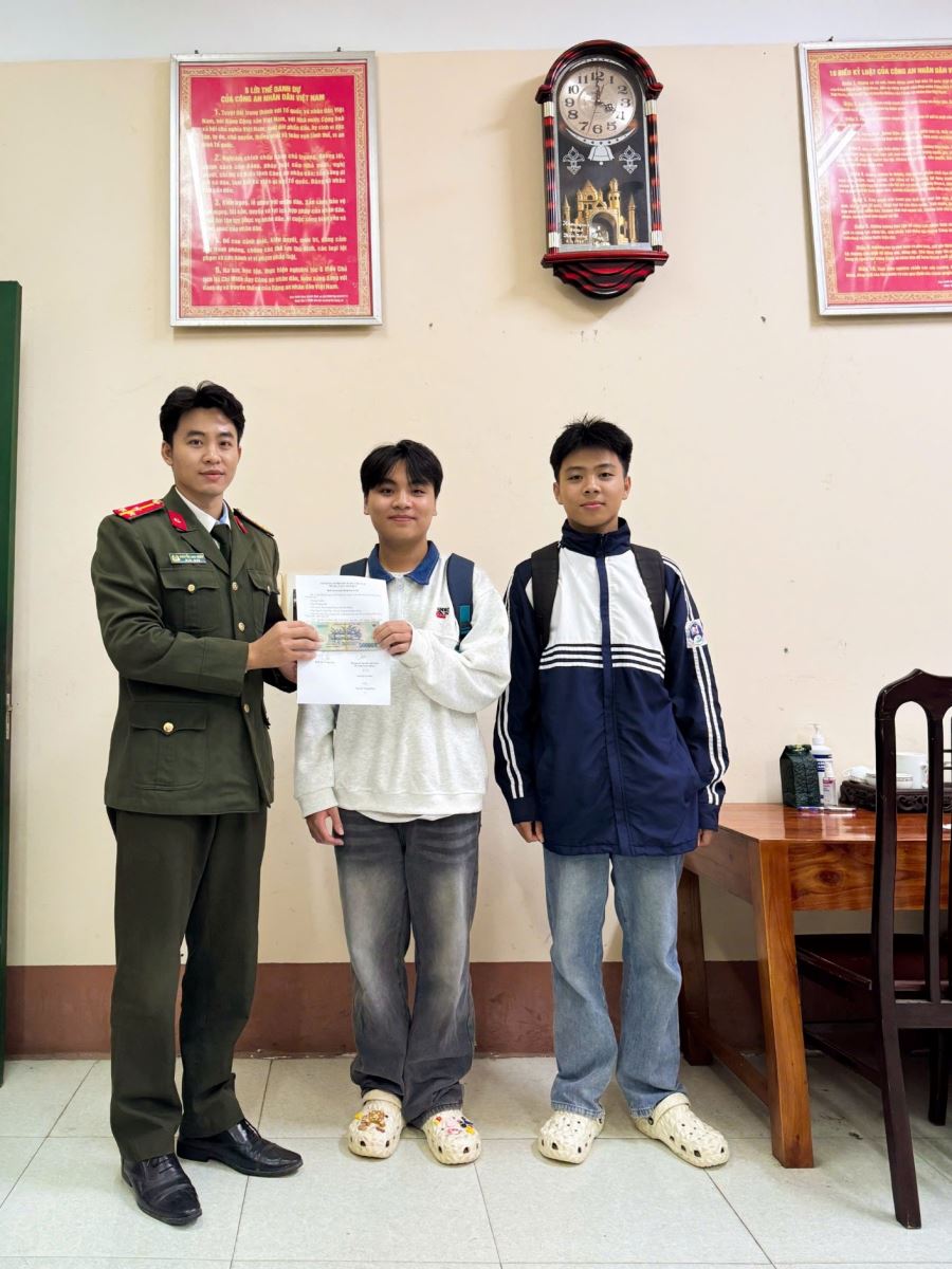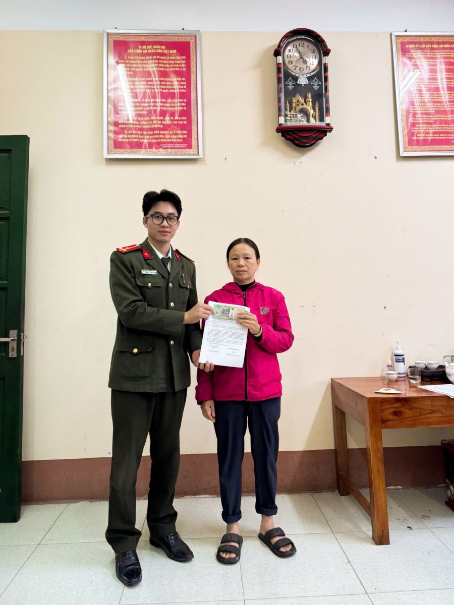 Ngày 19/11/2025, Công an xã Đoan Hùng đã xác minh và trao trả lại số tiền 2.601.000 đồng cho công dân Phan Thị Thanh Hải, trú tại khu Tân Long, xã Đoan Hùng. Đây là số tiền được hai học sinh Trường THPT Đoan Hùng, em Nguyễn Trung Dũng và em Nguyễn Trí Kiên (lớp 10A1) nhặt được và tự nguyện bàn giao lại cho lực lượng Công an.