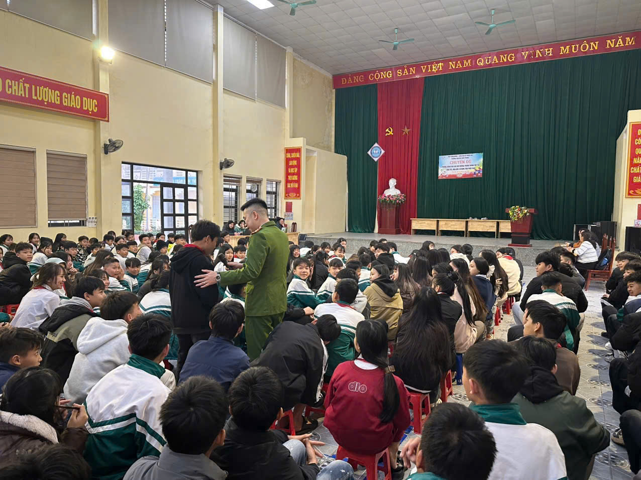 Buổi tuyên truyền được tổ chức trong không khí nghiêm túc, gần gũi, thu hút sự quan tâm của cán bộ, giáo viên và 334 học sinh của nhà trường. Đây là hoạt động thiết thực, có ý nghĩa quan trọng trong công tác giáo dục pháp luật, kỹ năng sống cho học sinh, đặc biệt trong bối cảnh tình trạng bạo lực học đường và các hành vi vi phạm pháp luật liên quan đến pháo vẫn còn tiềm ẩn nhiều phức tạp.