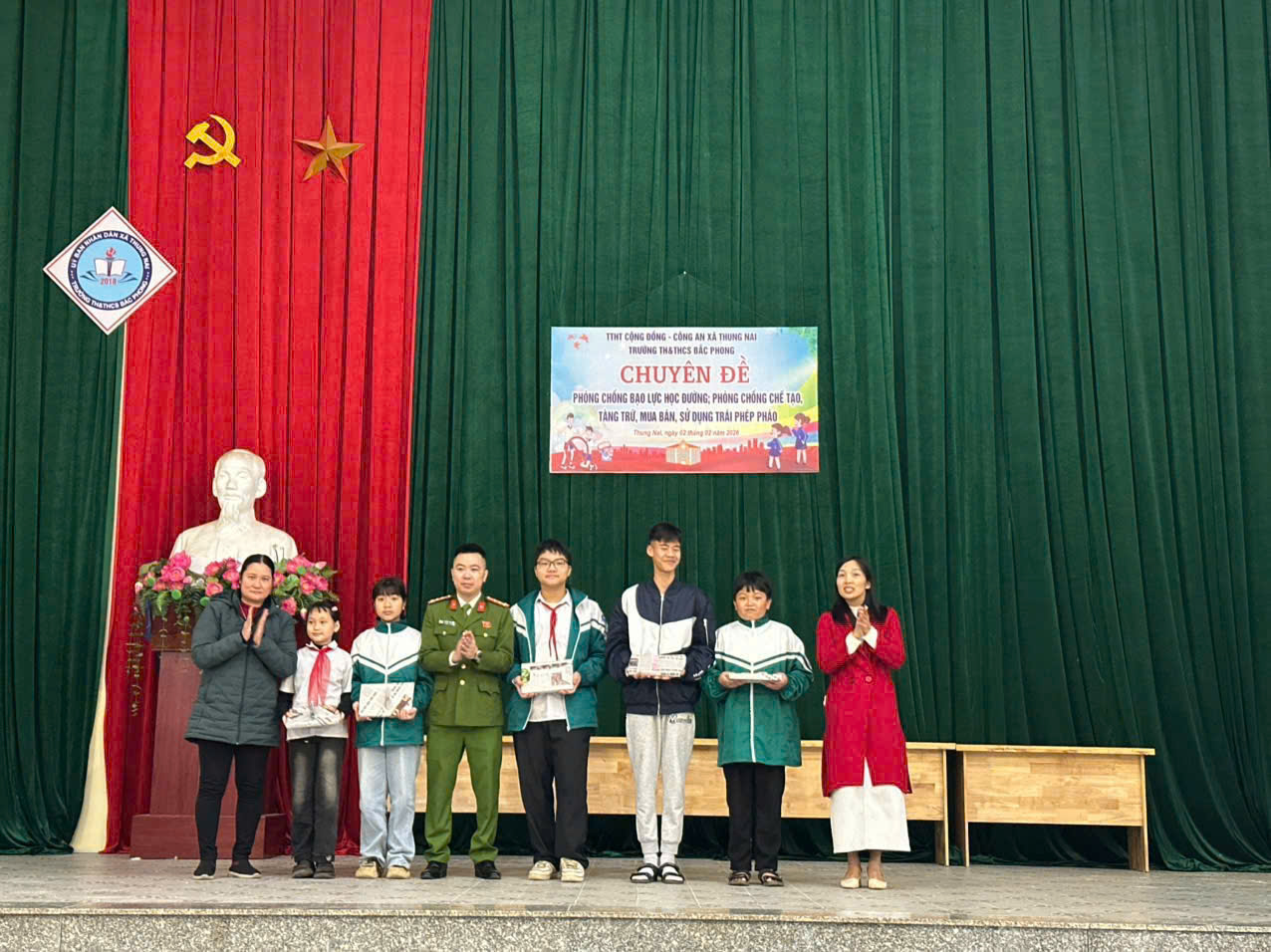 Nhằm nâng cao nhận thức, ý thức chấp hành pháp luật cho học sinh, góp phần xây dựng môi trường giáo dục an toàn, lành mạnh và thân thiện; ngày 02/02/2026, Công an xã Thung Nai đã phối hợp với Trung tâm học tập cộng đồng xã Thung Nai, Trường Tiểu học và Trung học cơ sở Bắc Phong tổ chức buổi tuyên truyền, phổ biến pháp luật với chủ đề phòng, chống bạo lực học đường và phòng, chống tàng trữ, mua bán, đốt pháo nổ trái phép.