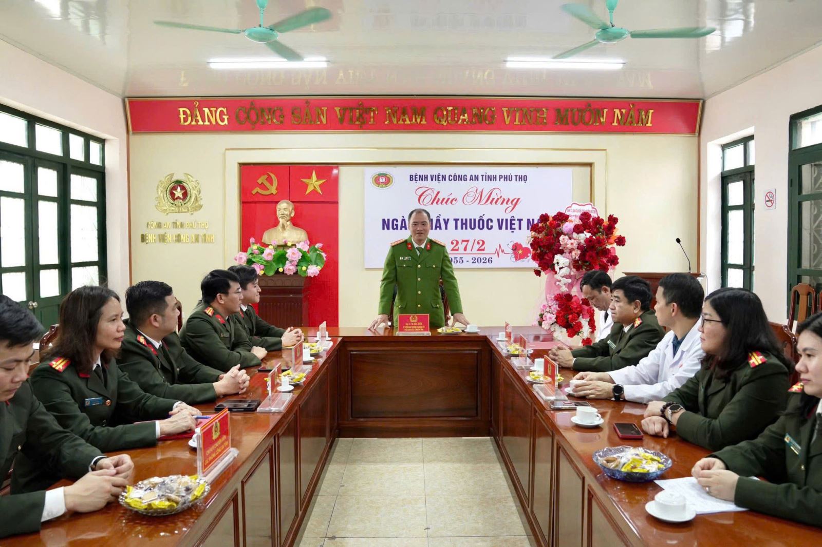 Chiều ngày 27/02/2026, đồng chí Đại tá Tạ Đức Diễn, Phó Giám đốc Công an tỉnh Phú Thọ đã đến thăm, chúc mừng tập thể y, bác sĩ Bệnh viện Công an tỉnh nhân kỷ niệm 71 năm Ngày Thầy thuốc Việt Nam (27/02/1955 - 27/02/2026).