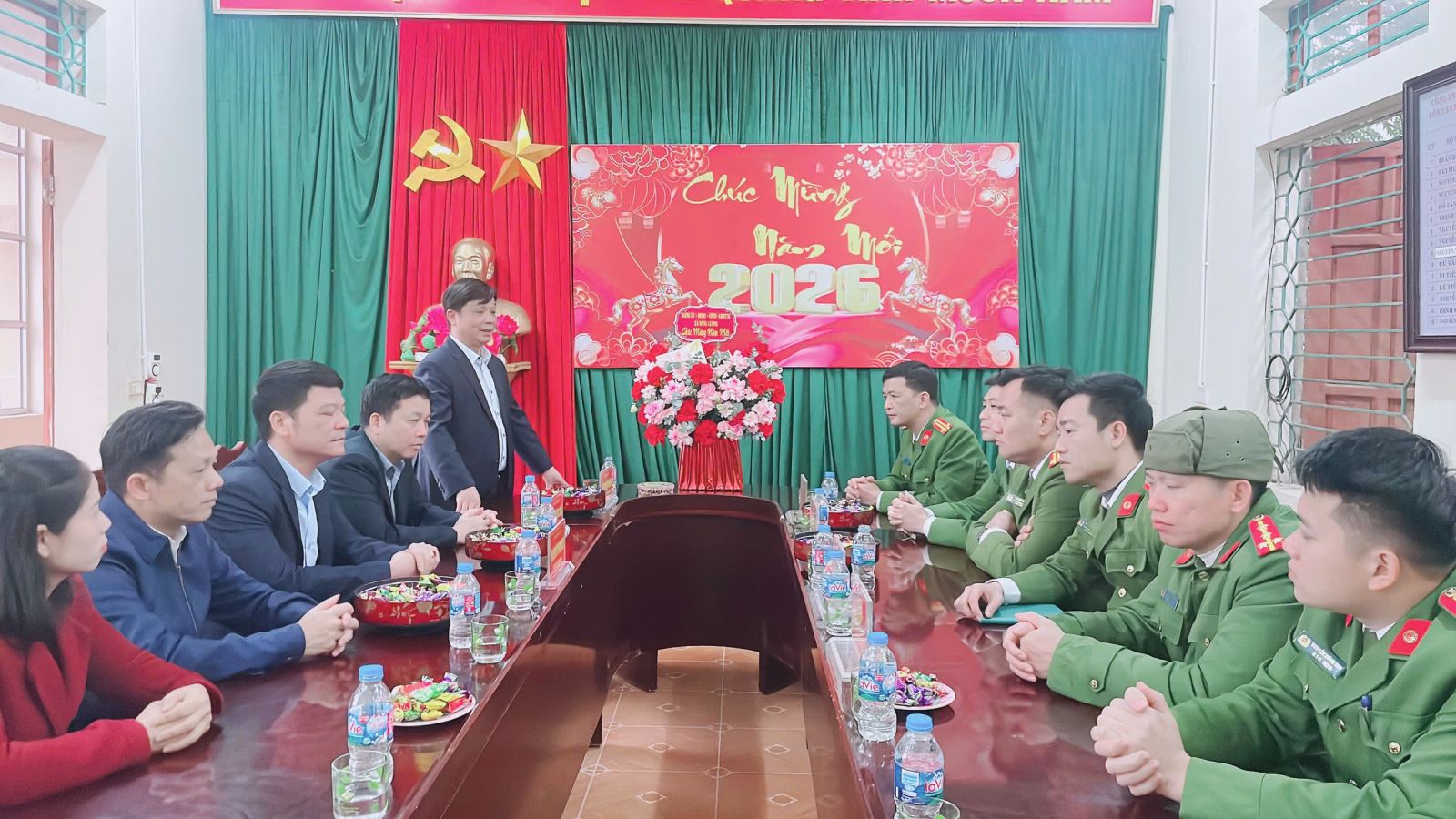 Nhân dịp năm mới, lãnh đạo xã gửi lời chúc mừng tốt đẹp tới toàn thể cán bộ, chiến sĩ Công an xã cùng gia đình; đồng thời đề nghị đơn vị tiếp tục phát huy tinh thần đoàn kết, trách nhiệm, chủ động nắm chắc tình hình cơ sở, kịp thời tham mưu cấp ủy, chính quyền triển khai hiệu quả các biện pháp bảo đảm an ninh trật tự, nhất là trong thời điểm trước, trong và sau Tết Nguyên đán.