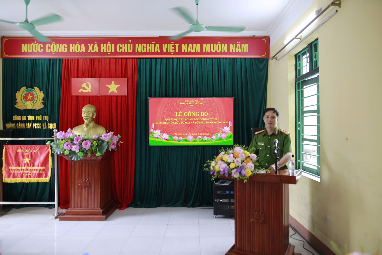 Sáng 20/5/2025, Công an tỉnh Phú Thọ tổ chức Lễ công bố Quyết định của Giám đốc Công an tỉnh về triển khai tổ chức bộ máy và bố trí cán bộ Phòng Cảnh sát PCCC&CNCH. Dự và chỉ đạo buổi lễ có đồng chí Thượng tá Nguyễn Xuân Trung, Phó Bí thư Đảng ủy, Phó Giám đốc Công an tỉnh, cùng đại diện lãnh đạo Phòng Tổ chức cán bộ, tập thể lãnh đạo, cán bộ, chiến sĩ Phòng Cảnh sát PCCC&CNCH.