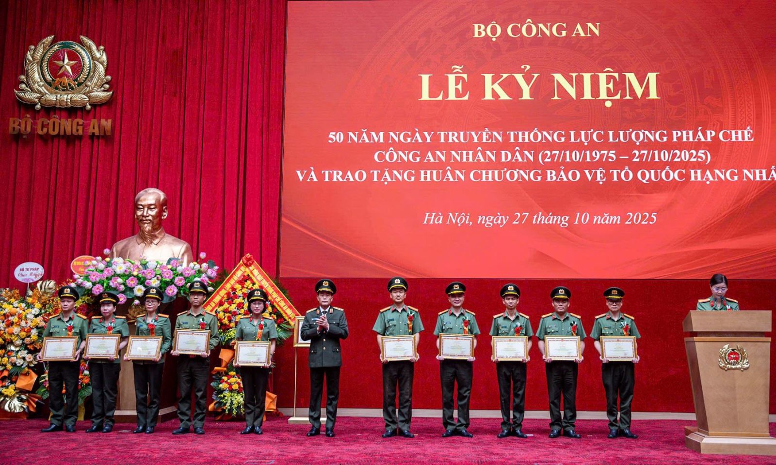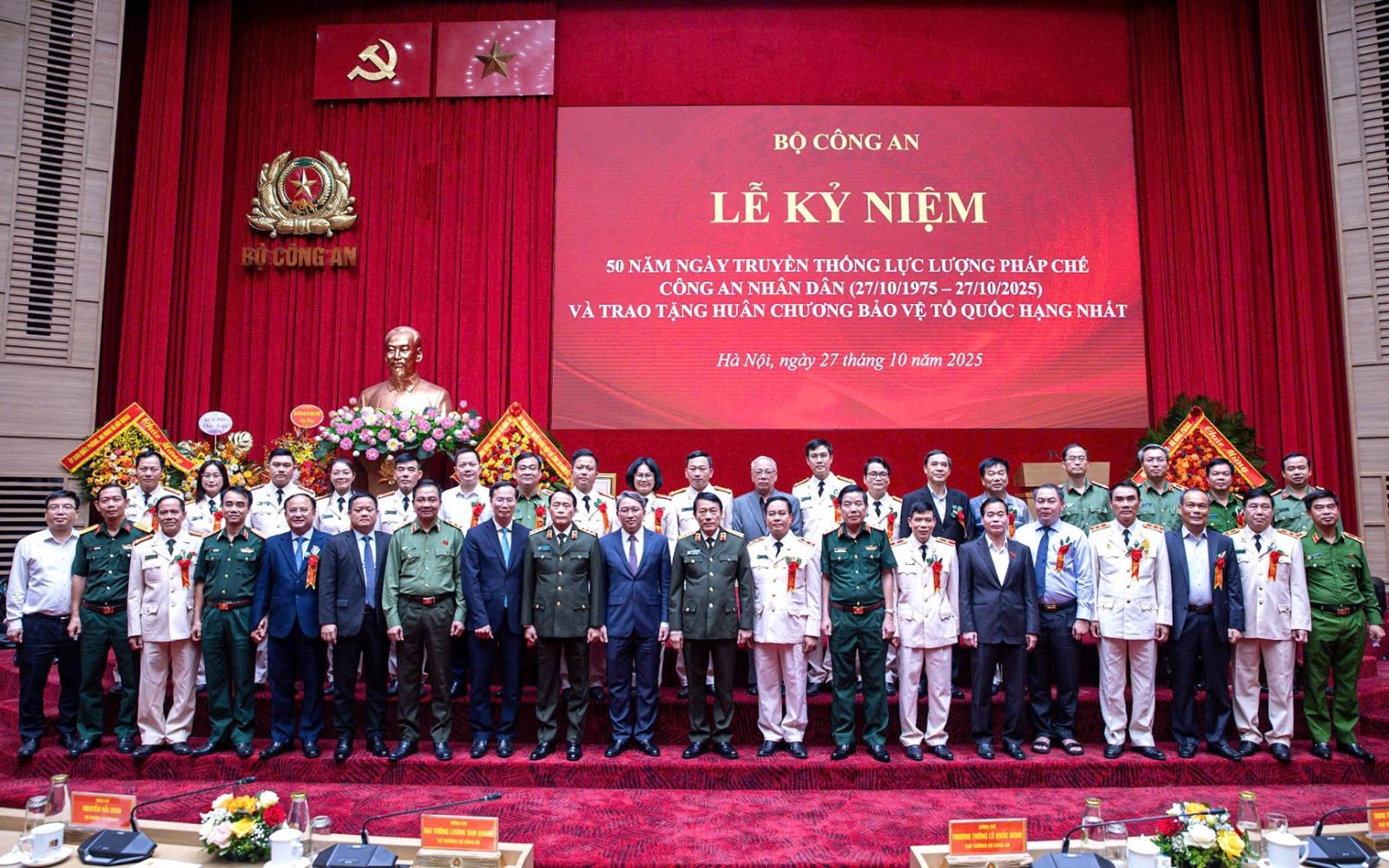 Chiều ngày 27/10/2025, tại Hà Nội, Bộ Công an long trọng tổ chức Lễ kỷ niệm 50 năm Ngày truyền thống lực lượng pháp chế Công an nhân dân (27/10/1975 - 27/10/2025) và trao tặng Huân chương Bảo vệ Tổ quốc hạng Nhất. Đại tướng Lương Tam Quang, Ủy viên Bộ Chính trị, Bộ trưởng Bộ Công an chủ trì buổi Lễ.
