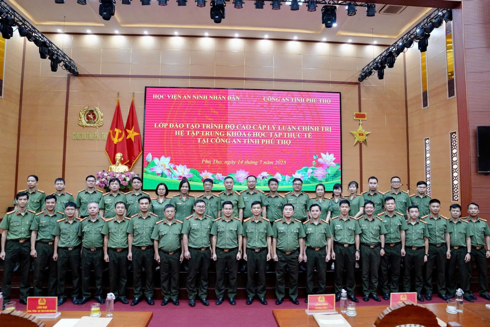 Sáng 14/7/2025, Công an tỉnh Phú Thọ phối hợp với Học viện An ninh nhân dân tổ chức sinh hoạt chính trị, học tập thực tế cho 100 học viên lớp Cao cấp lý luận chính trị hệ tập trung, Khóa 06, Học viện An ninh nhân dân.