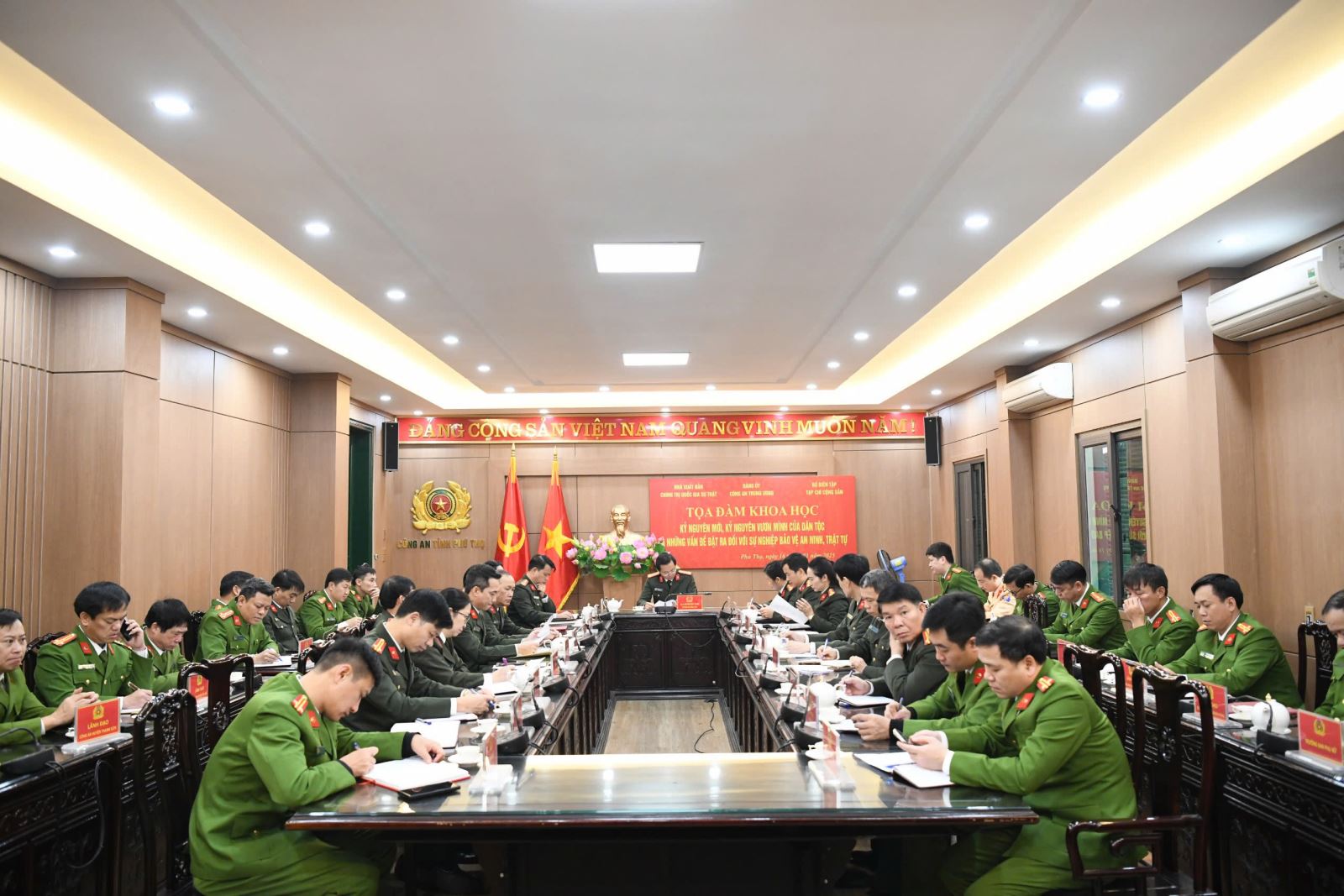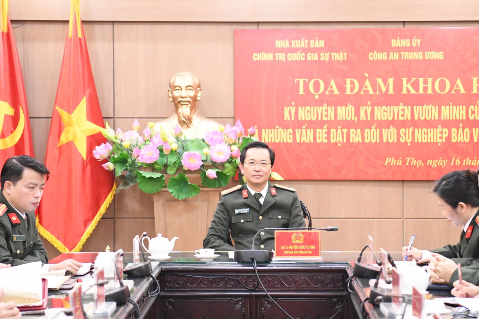 Tọa đàm được tổ chức trực tiếp kết hợp trực tuyến tới 63 điểm cầu Công an tỉnh, thành phố. Tại điểm cầu Công an tỉnh Phú Thọ, Đại tá Nguyễn Quốc Vương, Phó Giám đốc Công an tỉnh chủ trì buổi tọa đàm.