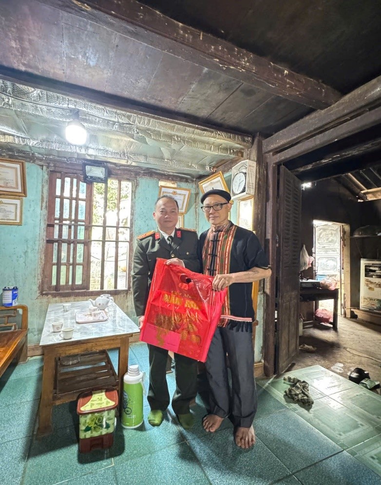 Thượng tá Hà Tiến Dũng - Trưởng Công an xã Pà Cò thăm, tặng quà già làng, người có uy tín trên địa bàn Thông qua các hoạt động cụ thể tại các xã Quy Đức, Mường Thàng, Pà Cò và Thượng Cốc, có thể thấy vai trò của người có uy tín trong đồng bào dân tộc thiểu số tiếp tục được khẳng định rõ nét. Việc Công an cơ sở chủ động thăm hỏi, phối hợp, lắng nghe và phát huy hiệu quả lực lượng quần chúng đặc biệt này đã góp phần củng cố mối quan hệ gắn bó giữa lực lượng Công an với Nhân dân, xây dựng thế trận an ninh Nhân dân vững chắc ngay từ cơ sở, phục vụ hiệu quả nhiệm vụ bảo đảm an ninh, trật tự và phát triển kinh tế - xã hội trên địa bàn tỉnh Phú Thọ.
