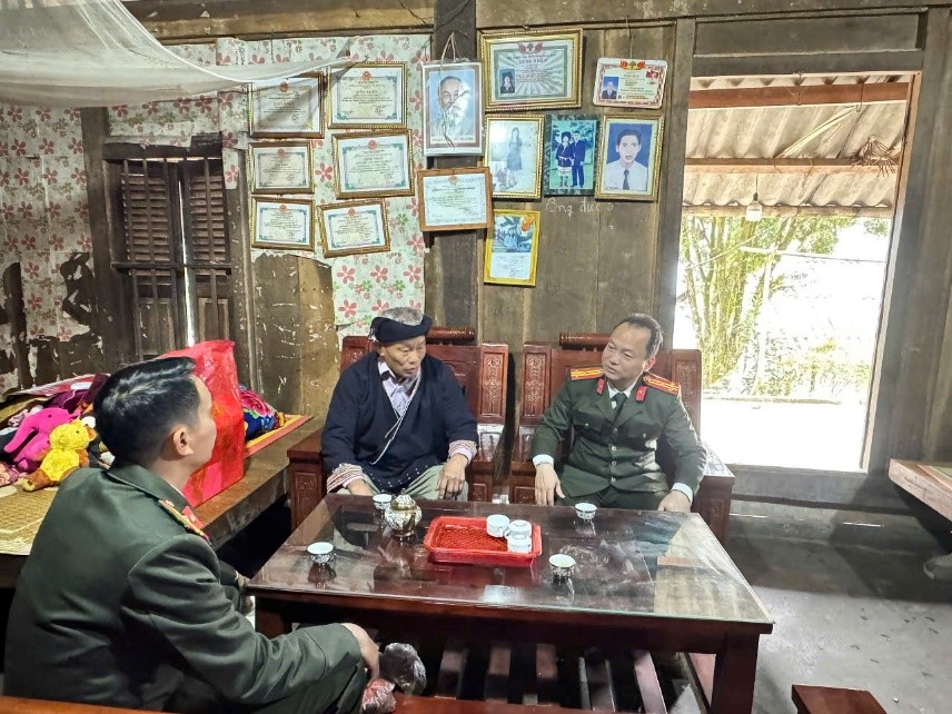 Nhân dịp Tết cổ truyền của đồng bào dân tộc Mông, ngày 18/01/2026, Công an xã Pà Cò đã tổ chức thăm hỏi, chúc Tết các già làng, người có uy tín trên địa bàn. Đồng chí Hà Tiến Dũng, Trưởng Công an xã, đã trực tiếp đến thăm hỏi, động viên các gia đình, trao đổi về tình hình an ninh, trật tự và mong muốn các già làng, người có uy tín tiếp tục phối hợp, hỗ trợ lực lượng Công an trong công tác tuyên truyền, vận động Nhân dân chấp hành pháp luật, giữ gìn bản sắc văn hóa dân tộc Mông, xây dựng địa bàn ổn định, an toàn.