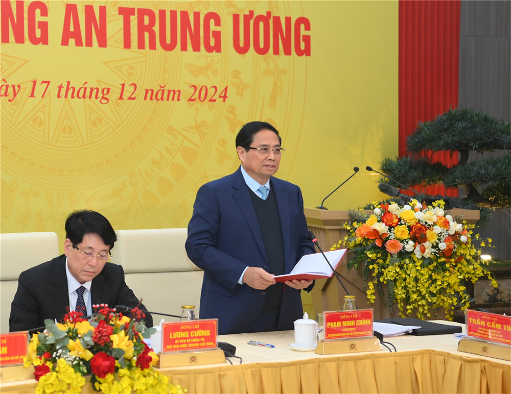 Các đồng chí: Chủ tịch nước Lương Cường, Ủy viên Bộ Chính trị, Ủy viên Ban Thường vụ Đảng ủy Công an Trung ương (CATW); Thủ tướng Chính phủ Phạm Minh Chính, Ủy viên Bộ Chính trị, Ủy viên Ban Thường vụ Đảng ủy CATW cùng dự và phát biểu chỉ đạo.