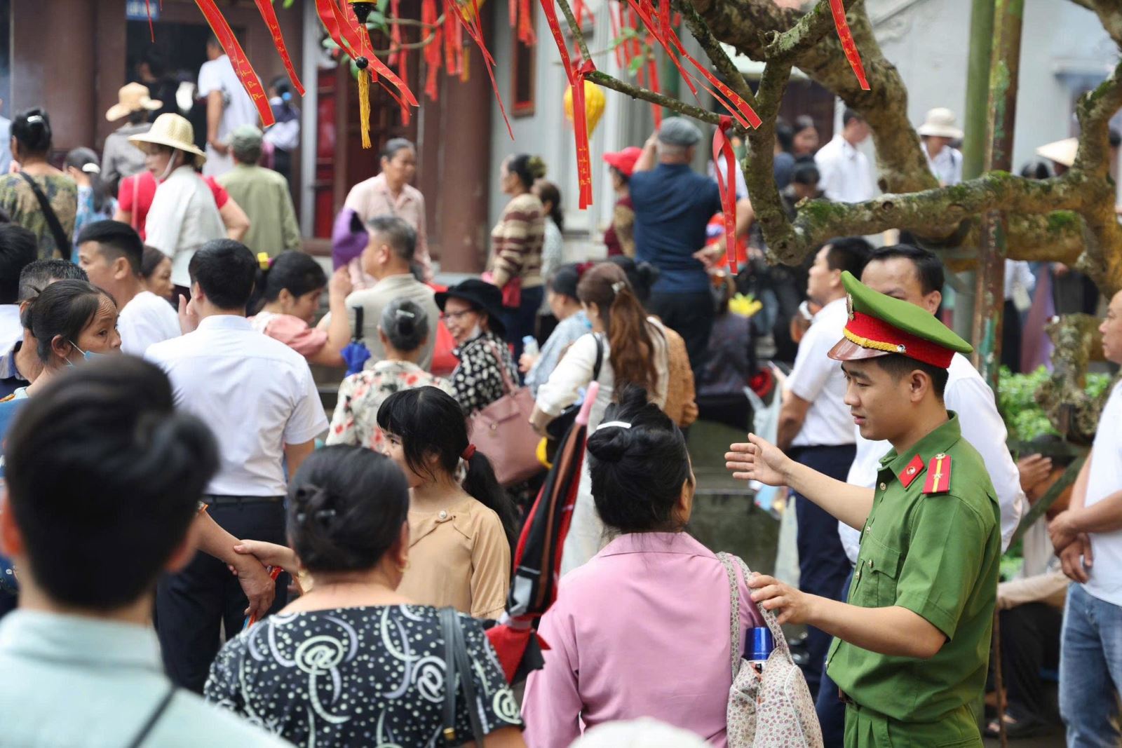 Cán bộ Công an tỉnh Phú Thọ hướng dẫn, hỗ trợ nhân dân về Lễ hội Đền Hùng