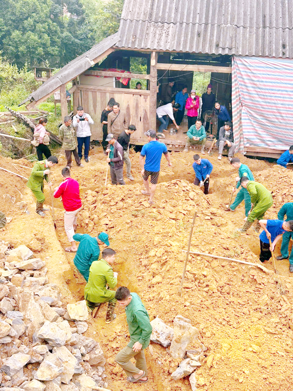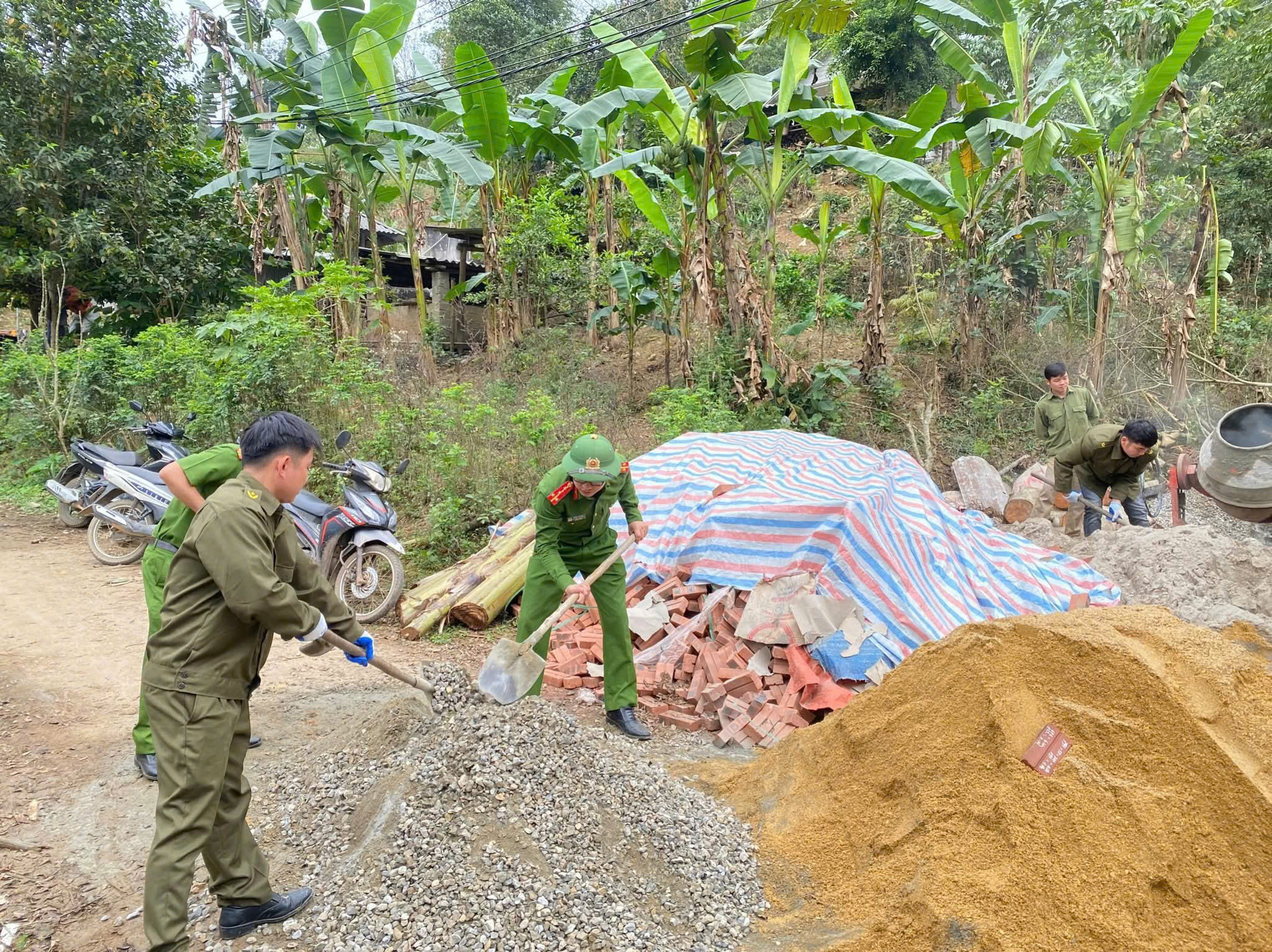 Ngay từ những ngày đầu triển khai, các tổ công tác đã bám sát cơ sở, khảo sát hiện trạng, lập phương án thi công phù hợp địa hình, địa chất; huy động lực lượng tại chỗ hỗ trợ đào móng, vận chuyển vật liệu. Tinh thần “mỗi cán bộ, chiến sĩ một ngày công vì cộng đồng” lan tỏa sâu rộng.