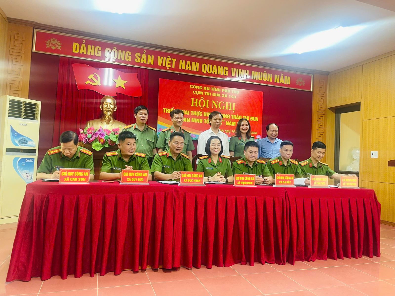 Thực hiện khẩu hiệu hành động của toàn lực lượng Công an tỉnh Phú Thọ năm 2026: “Theo lời Bác dạy - Đổi mới tư duy, Nâng cao tri thức - Chính quy, hiện đại - Vì Đảng, vì dân”, ngày 10/4/2026, Công an các xã thuộc Cụm thi đua số 143, Công an tỉnh Phú Thọ tổ chức Hội nghị triển khai thực hiện phong trào thi đua “Vì an ninh Tổ quốc” năm 2026.