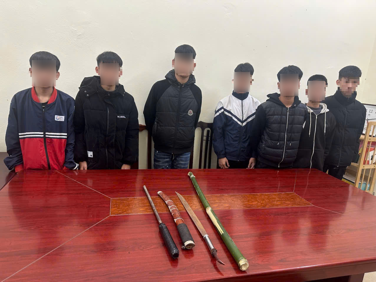 Nhóm thanh niên bị phát hiện chuẩn bị có hành vi vi phạm về an ninh trật tự Khi thấy lực lượng Công an, các đối tượng đã vứt bỏ hung khí hòng phi tang và bỏ chạy. Tổ công tác đã kịp thời khống chế, đưa 07 đối tượng liên quan về trụ sở để làm việc. Tại cơ quan Công an, danh tính các đối tượng được xác định có độ tuổi từ 16 đến 20 (sinh năm 2006 đến 2010), hiện đang thường trú và học tập trên địa bàn xã Thịnh Minh.
