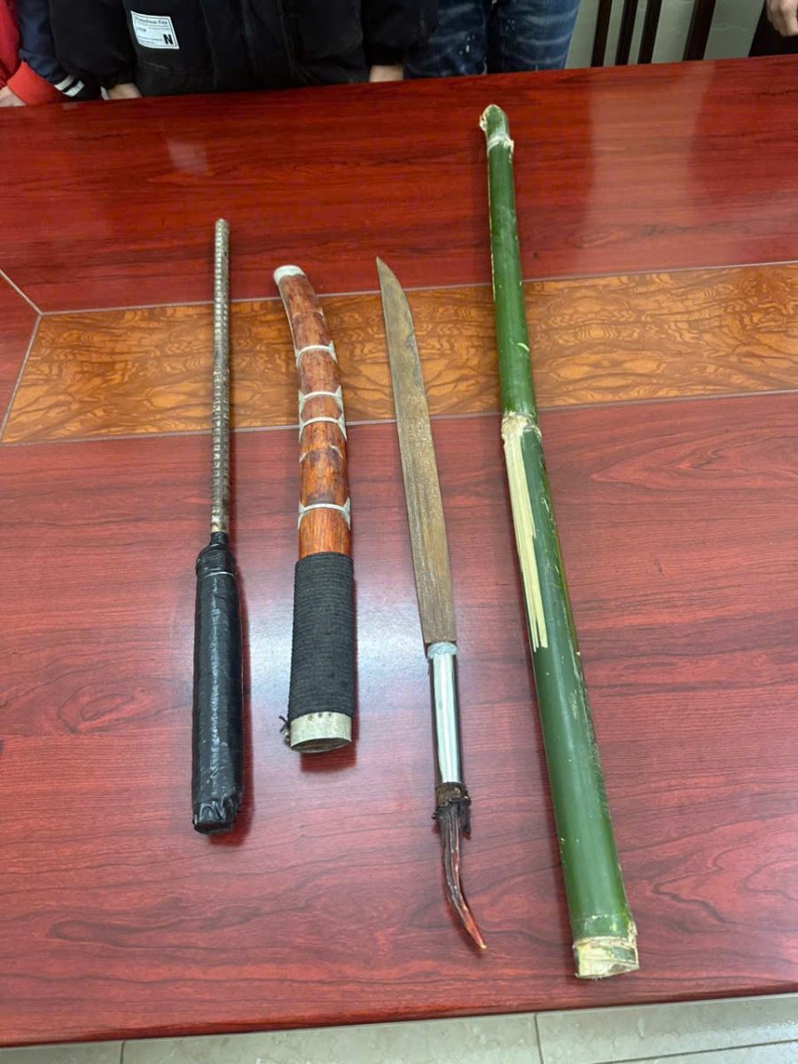 Vào khoảng 22 giờ 15 phút ngày 08/02/2026, trong quá trình tuần tra vũ trang ban đêm, tổ công tác của Công an xã Thịnh Minh phát hiện một nhóm khoảng 10 thanh niên đang tụ tập tại tuyến đường thuộc địa bàn xóm Mè, xã Thịnh Minh có biểu hiện nghi vấn. Qua kiểm tra, lực lượng chức năng phát hiện nhóm đối tượng mang theo nhiều hung khí tự chế nguy hiểm gồm: 02 con dao, 01 gậy tre và 01 dùi cui sắt.