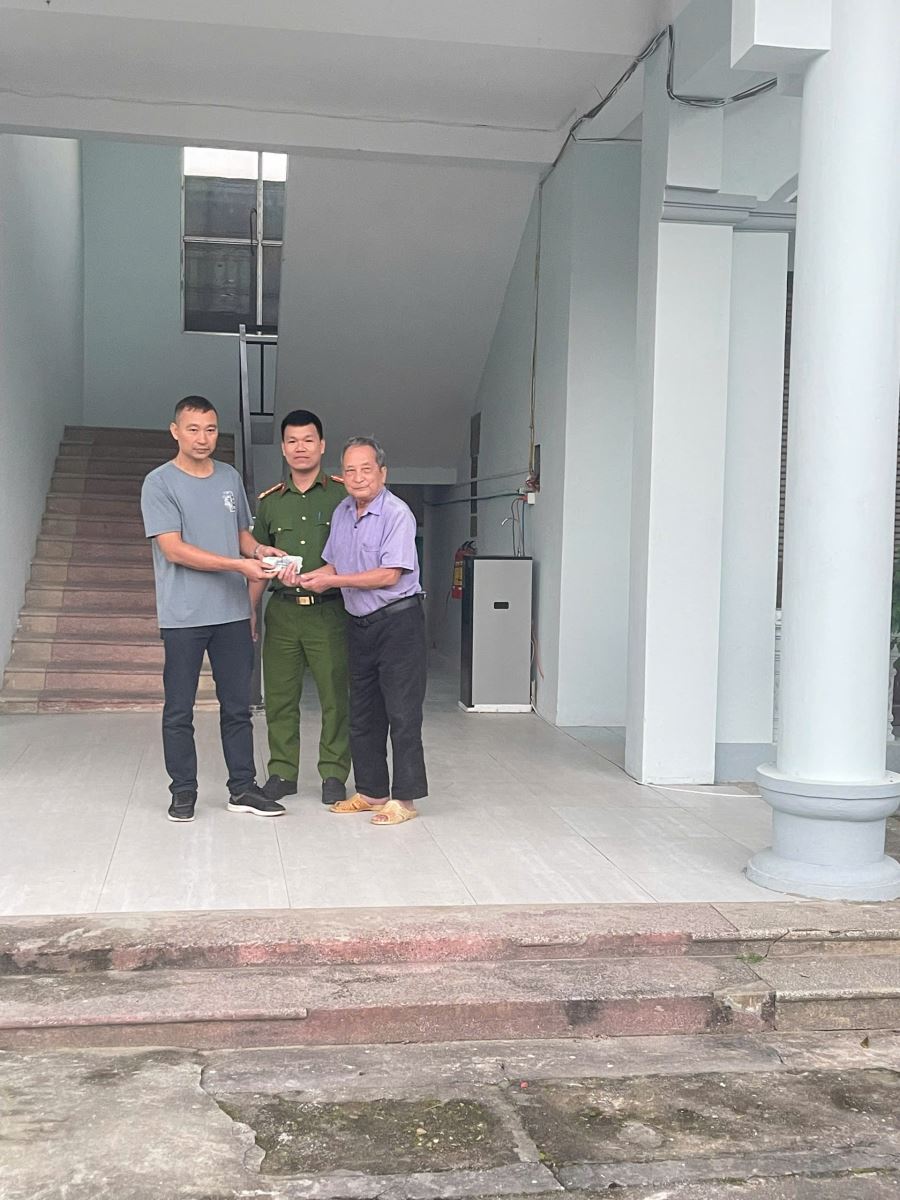 Tiếp nhận thông tin, Công an xã Chí Tiên đã nhanh chóng tiến hành xác minh. Qua rà soát và làm việc với người dân trên địa bàn, lực lượng Công an xác định người đánh rơi tài sản là ông Hà Xuân Lâm, sinh năm 1942, trú tại Khu 1, Thanh Hà, xã Chí Tiên. Sau khi mời ông Lâm đến trụ sở để làm việc và đối chiếu thông tin, Công an xã đã phối hợp với anh Phùng Trung Kiên trao trả lại đầy đủ số tiền 9.800.000 đồng cho ông Lâm theo đúng quy định.