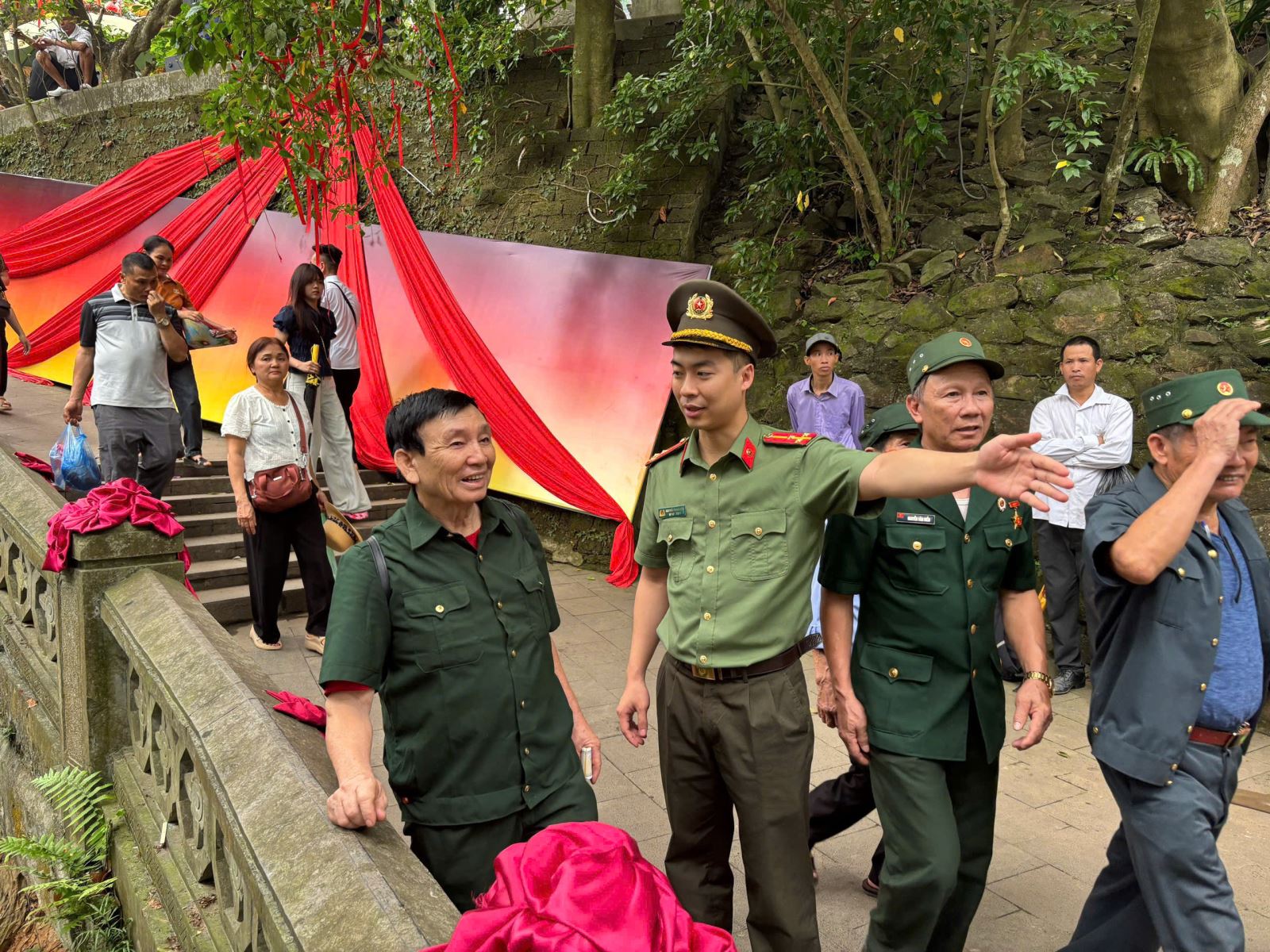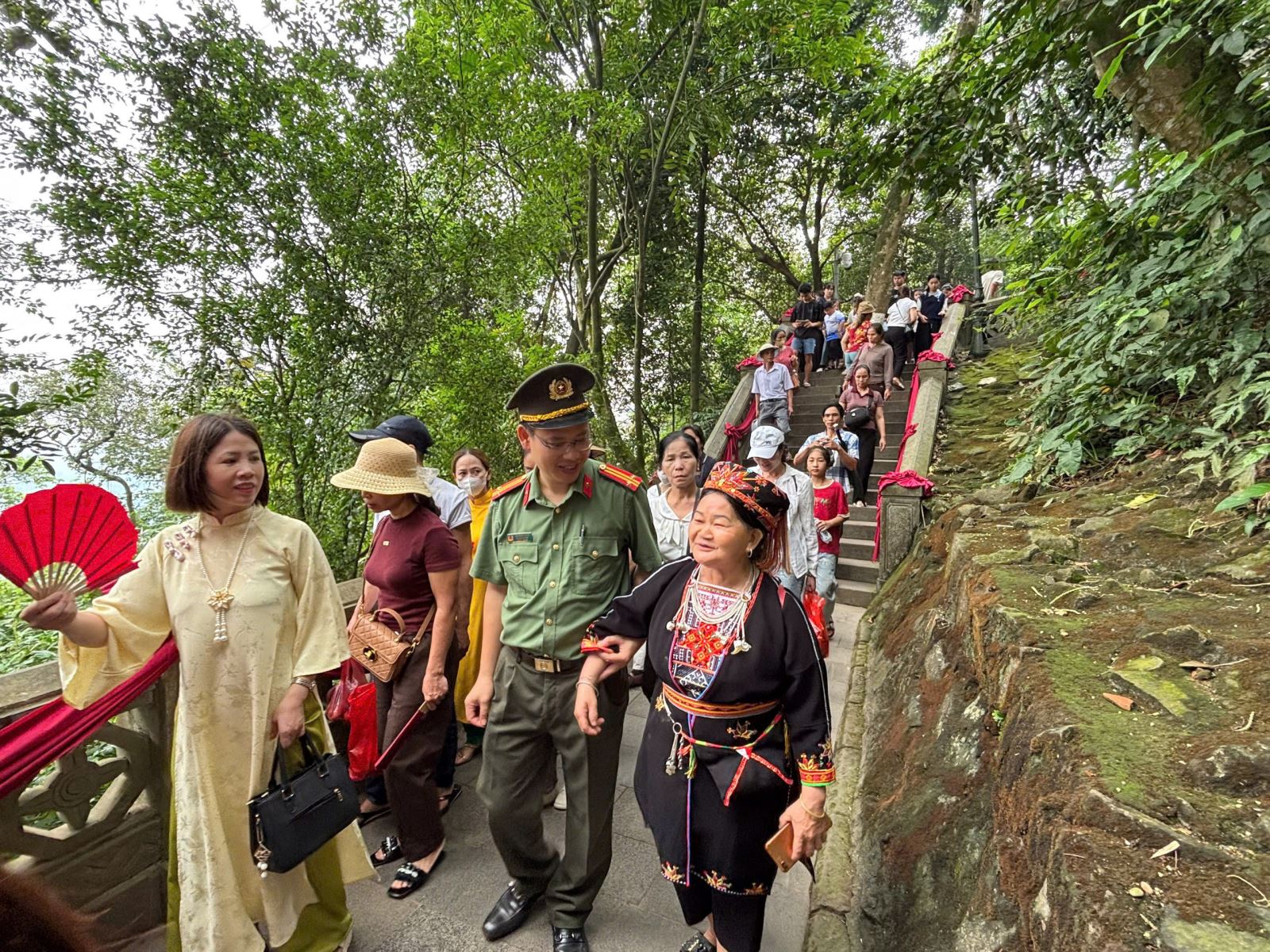 Không chỉ đảm bảo an ninh, trật tự, các cán bộ, chiến sĩ còn tận tình hướng dẫn đường đi, phân luồng, hỗ trợ người dân lên, xuống đền thuận tiện, an toàn. Những câu nói giản dị như “Bác đi lối này cho thuận tiện ạ”, “Để cháu đỡ bác nhé”, “Bác đi cẩn thận ạ”… đã trở nên quen thuộc, gần gũi giữa lực lượng chức năng với Nhân dân, du khách. Đặc biệt, hình ảnh các chiến sĩ ân cần giúp đỡ người cao tuổi, trẻ nhỏ, những du khách gặp khó khăn đã trở thành những khoảnh khắc đẹp, đầy tính nhân văn. Giữa biển người đông đúc, sự chủ động, tận tụy và tinh thần trách nhiệm cao của lực lượng Công an đã góp phần mang lại cảm giác an tâm cho mọi người khi đến tham quan Đền Hùng.
