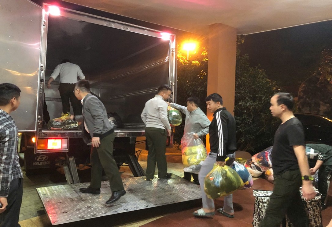 Cán bộ Phòng An ninh chính trị nội bộ sắp xếp quần áo, vật dụng được quyên góp