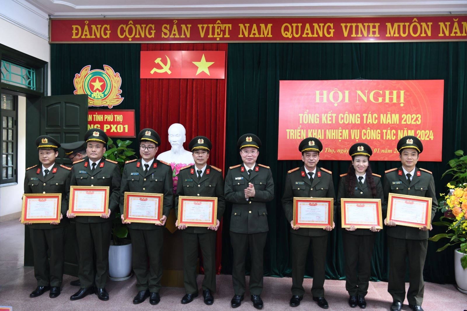 Ngày 09/1, phòng Tổ chức cán bộ Công an tỉnh tổ chức Hội nghị tổng kết công tác năm 2023 và triển khai công tác năm 2024. Đồng chí Đại tá Nguyễn Minh Tuấn - Ủy viên BTV Tỉnh ủy, Bí thư Đảng ủy, Giám đốc Công an tỉnh dự và phát biểu chỉ đạo hội nghị.