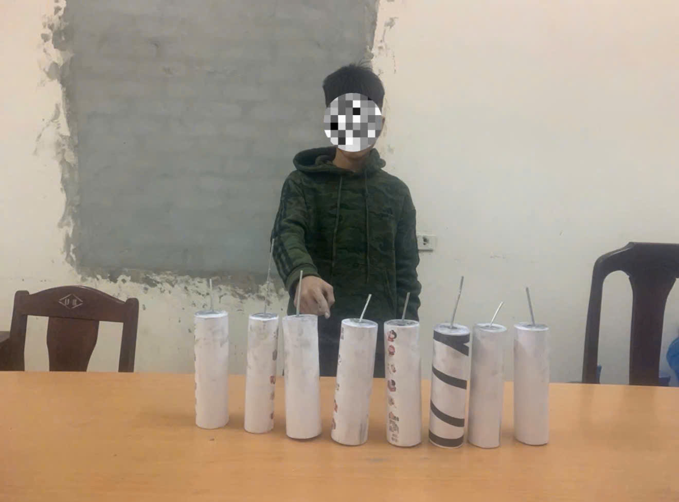 Qua kiểm tra, nam thanh niên khai nhận tên T.Đ.D, sinh năm 2010, trú tại khu 9, xã Hiền Quan. Bên trong thùng cát tông, lực lượng chức năng phát hiện 08 khối giấy được cuốn thành hình trụ, kích thước khác nhau, có tổng khối lượng khoảng 3,6 kg. T.Đ.D khai nhận số tang vật trên là pháo nổ tự chế, mua về để sử dụng trong dịp Tết Nguyên đán Bính Ngọ 2026.